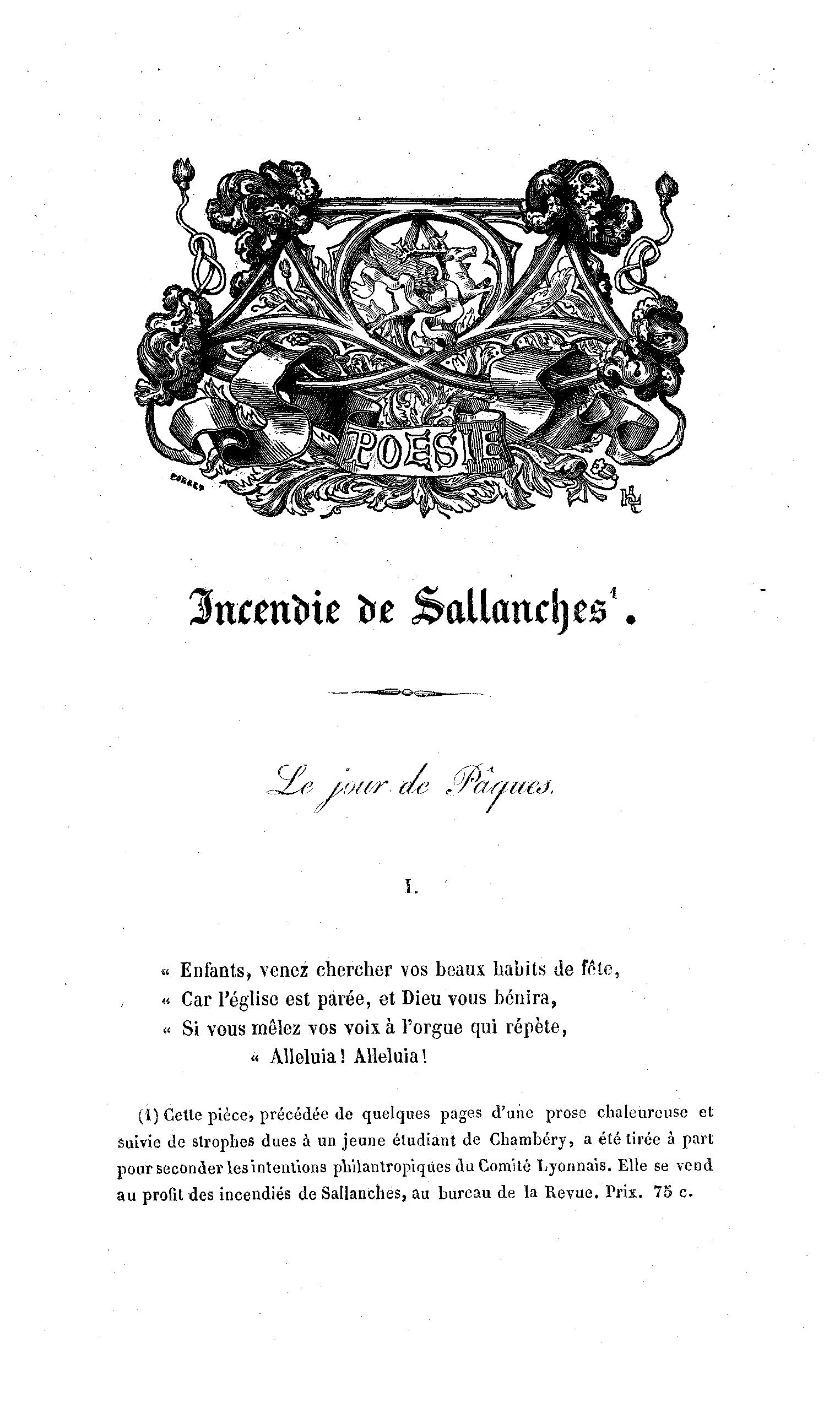 au profit des incendiés de Sallanches, au bureau de la Revue. Prix. 75 c.
