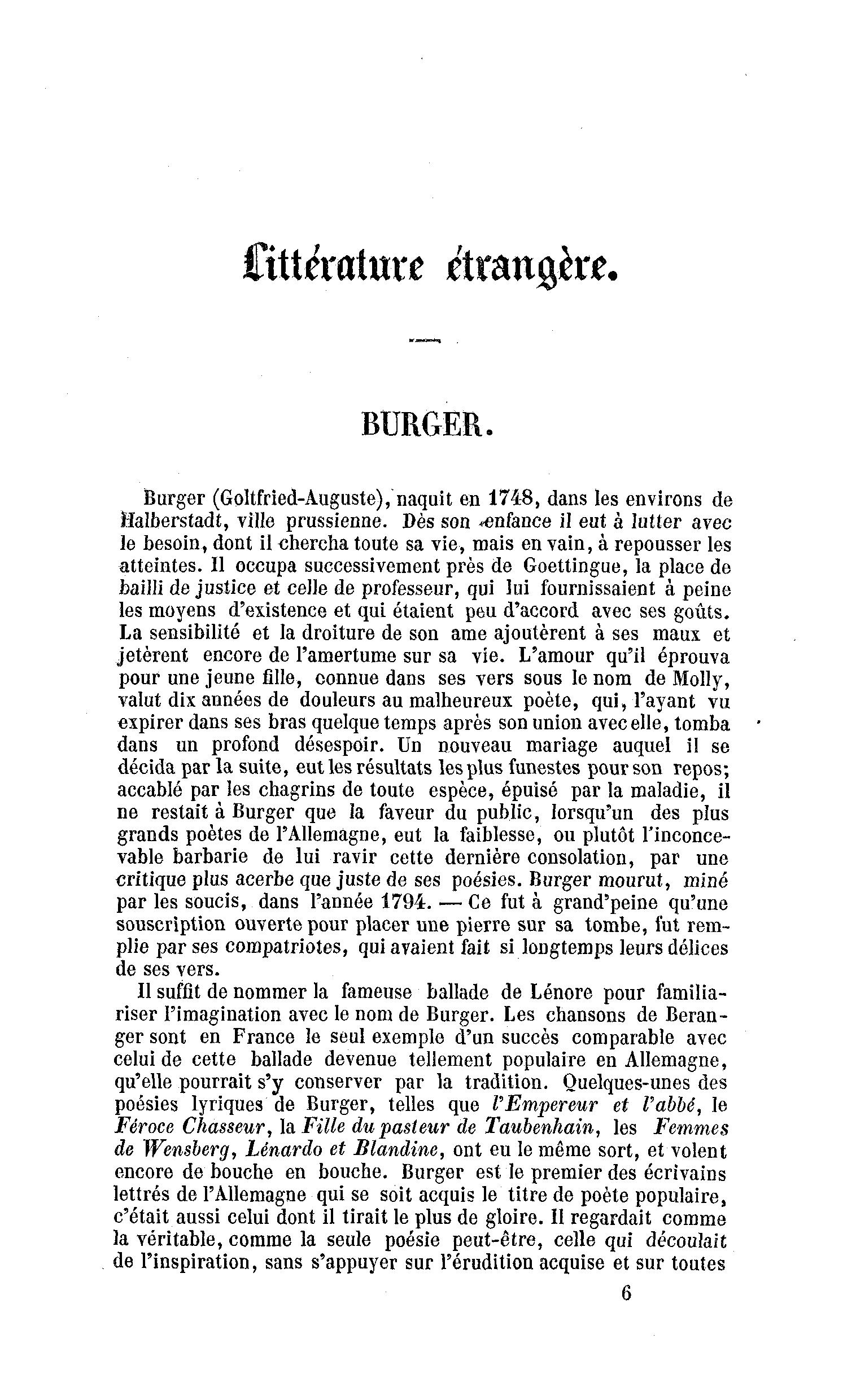 critique plus acerbe que juste de ses poésies. Burger mourut, miné
