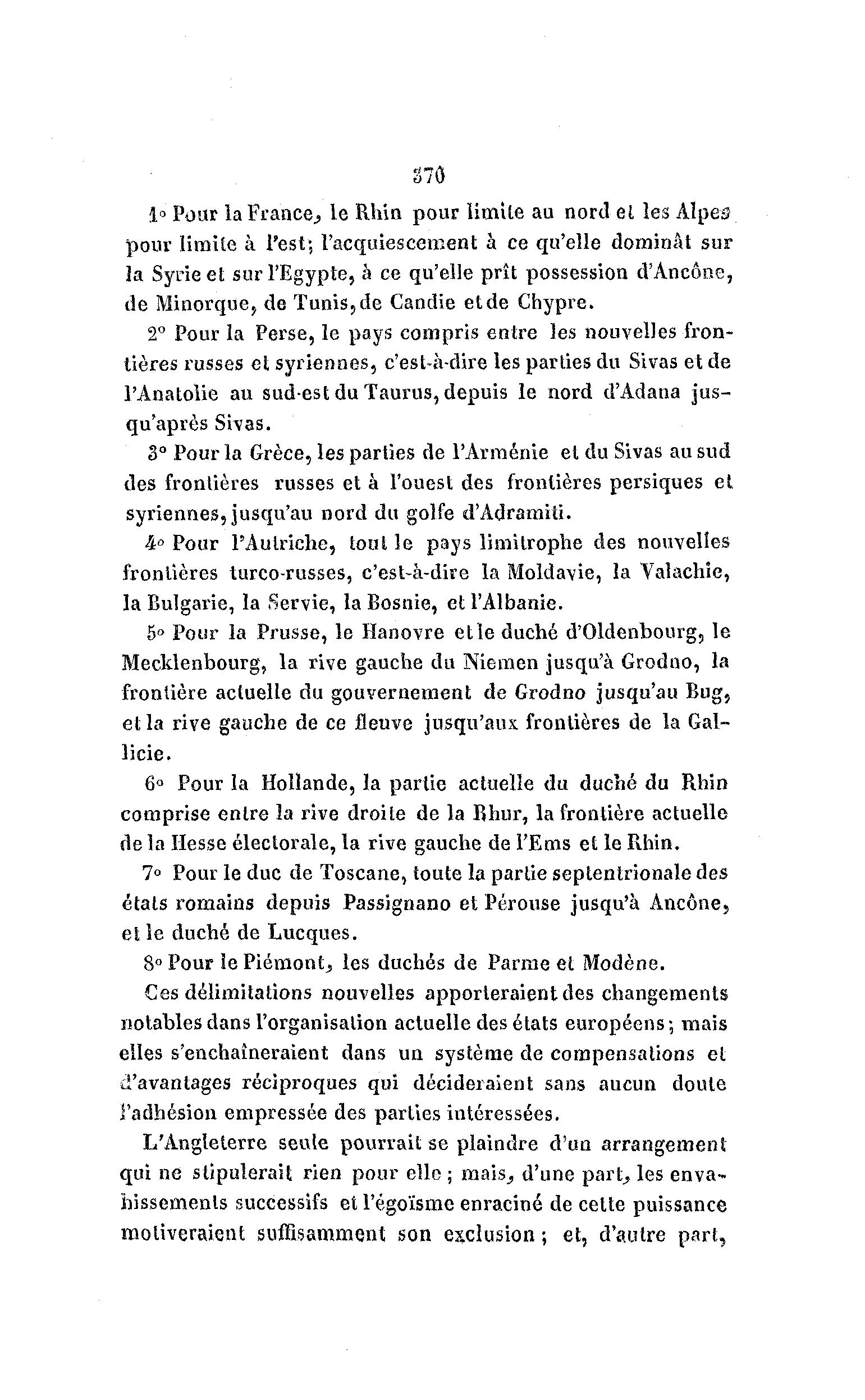 1° Pour la France., le Rhin pour limite au nord et les Alpes