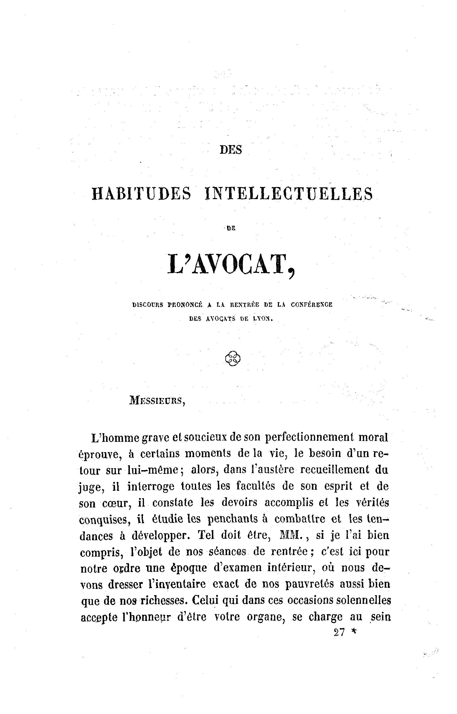 DISCOURS PRONONCÉ A LA RENTRÉE LE LA CON'FÊREN'GE