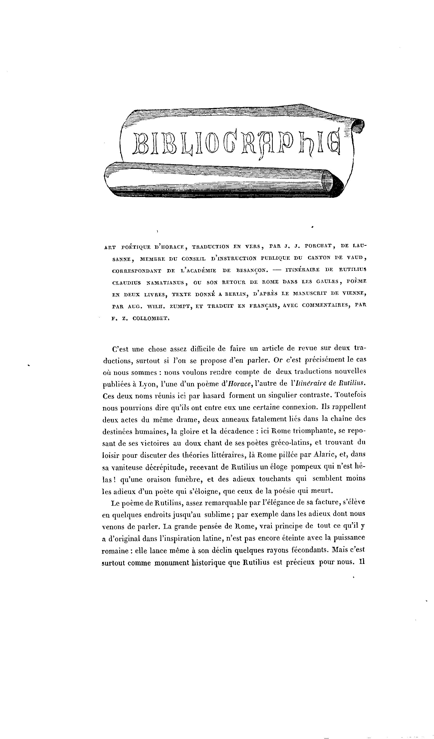 CORRESPONDANT DE L'ACADEMIE DE BESANCON. ITINERAIRE DE RUTILIUS