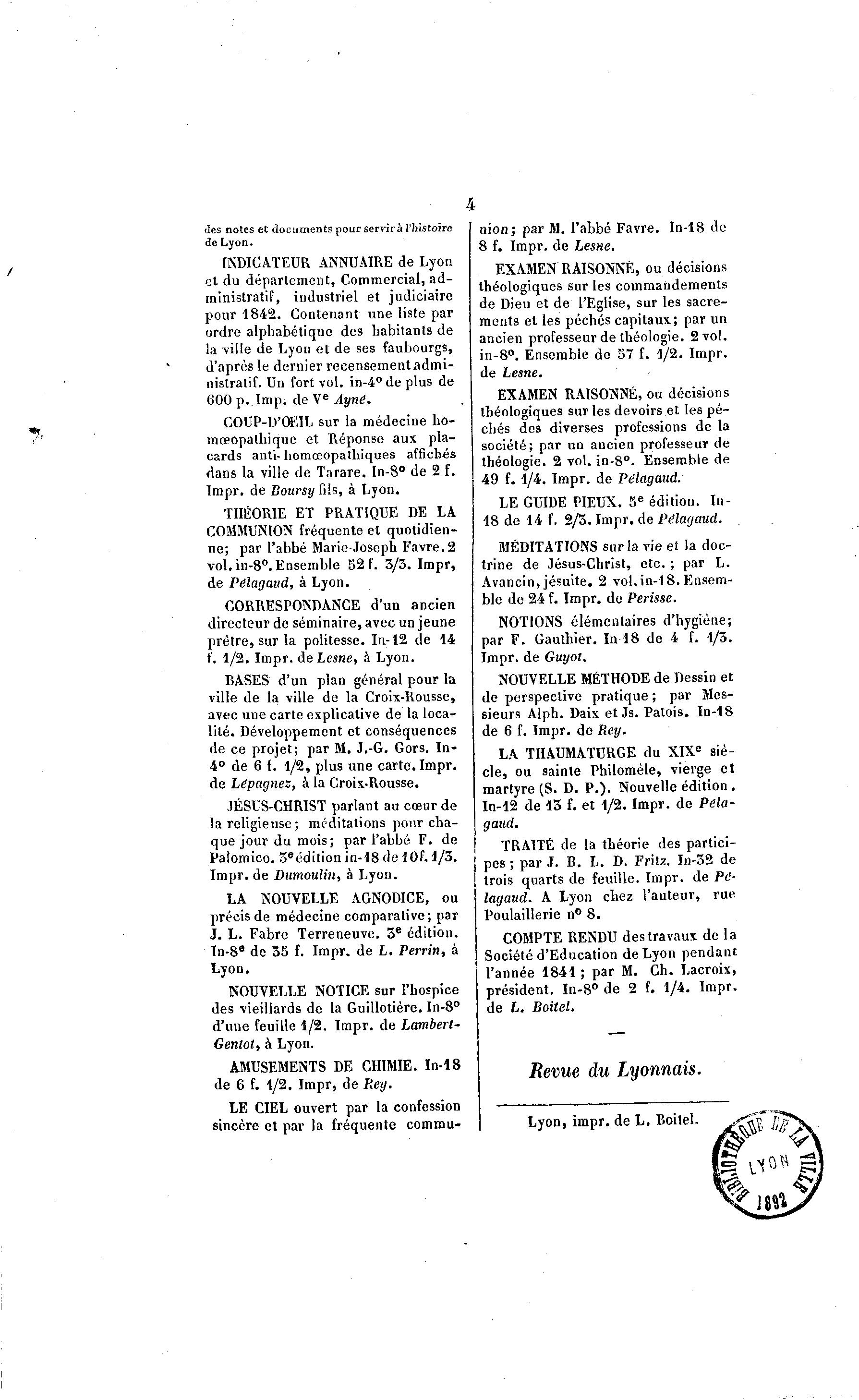 f. "1/2. Impr. de Lesne, Ã Lyon. Impr. de Guyot.
