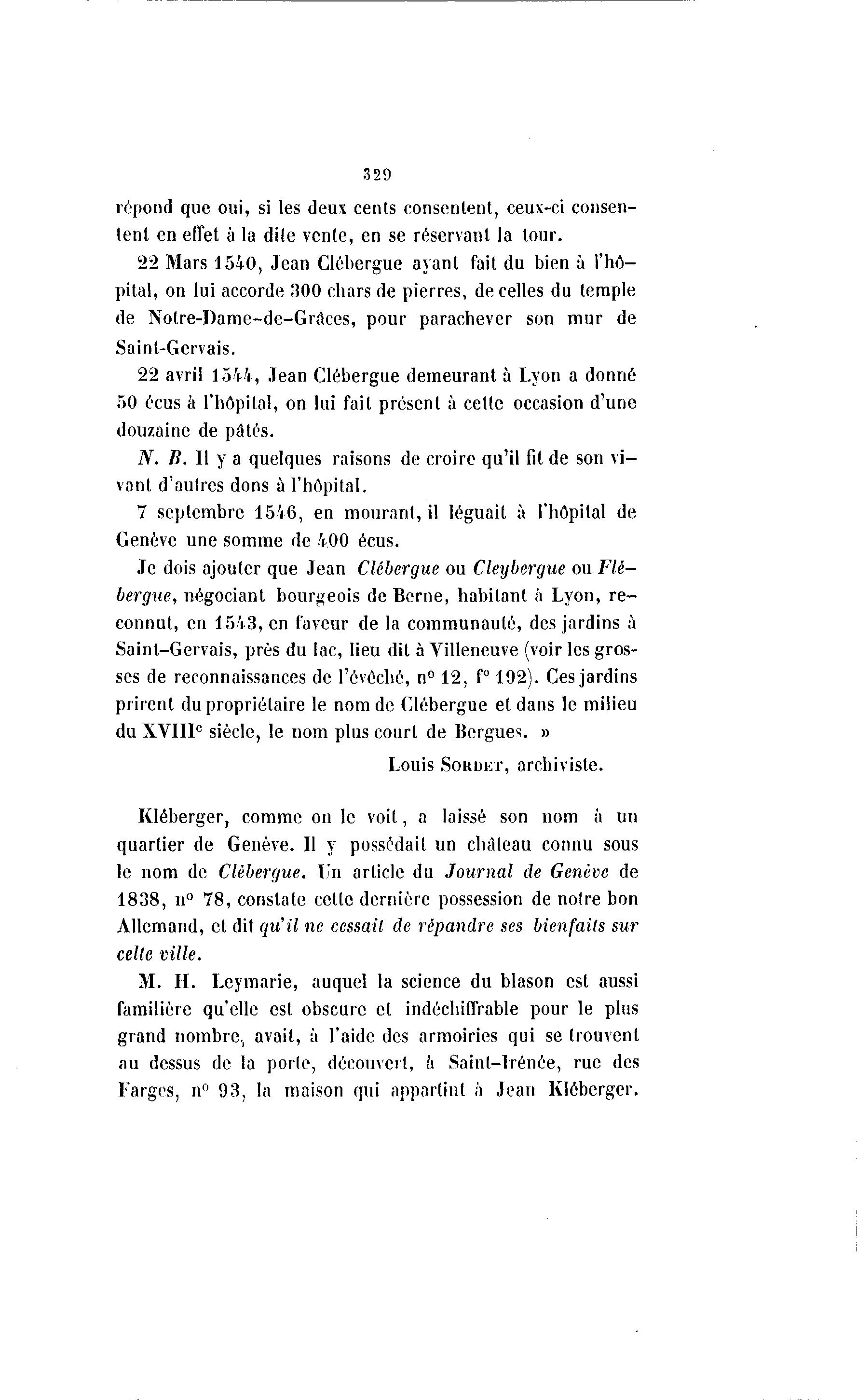le nom de Clébergue. Un article du Journal de Genève de