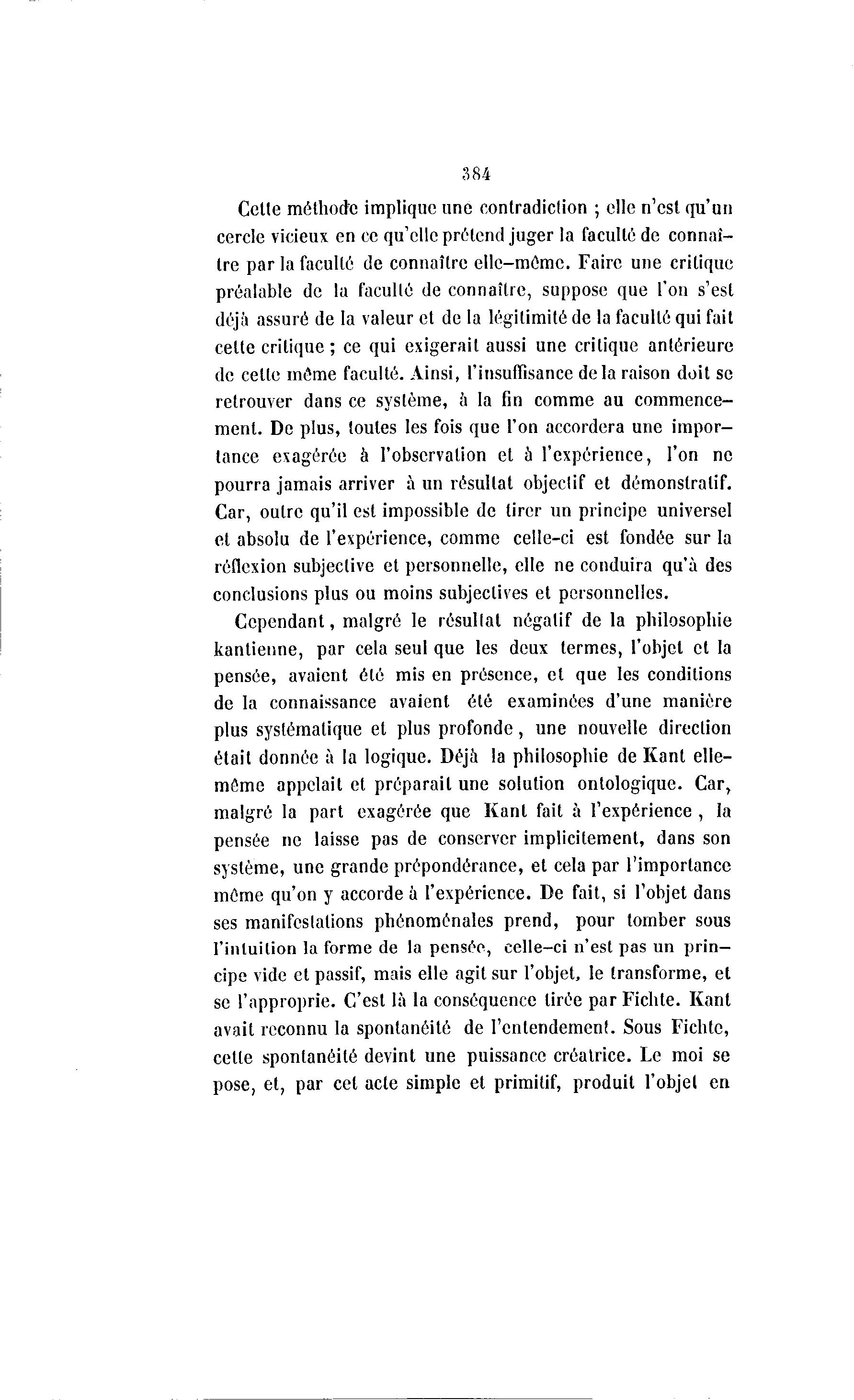 se l'approprie. C'est là la conséquence tirée parFichte. Kant