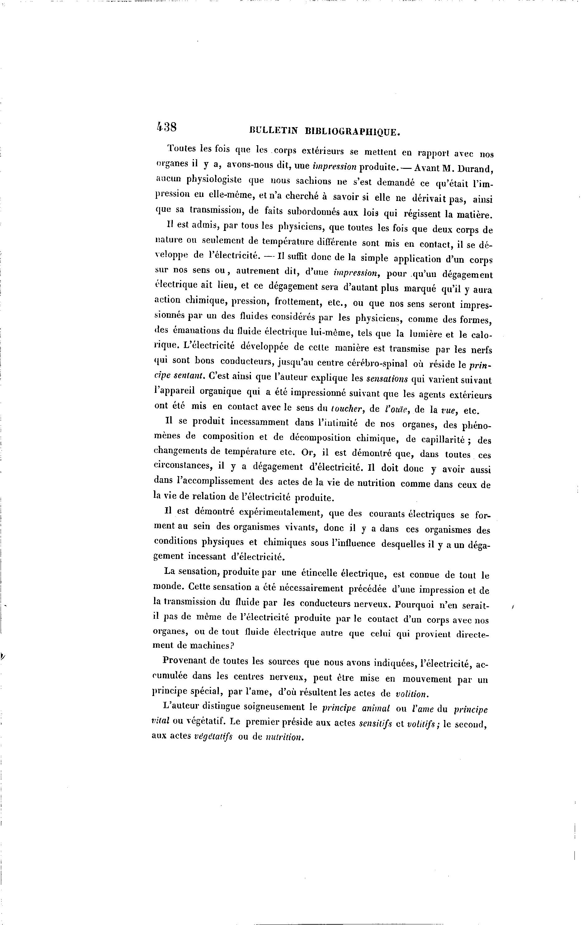 organes il y a, avons-nous dit, uue impression produite. — Avant M. Durand,