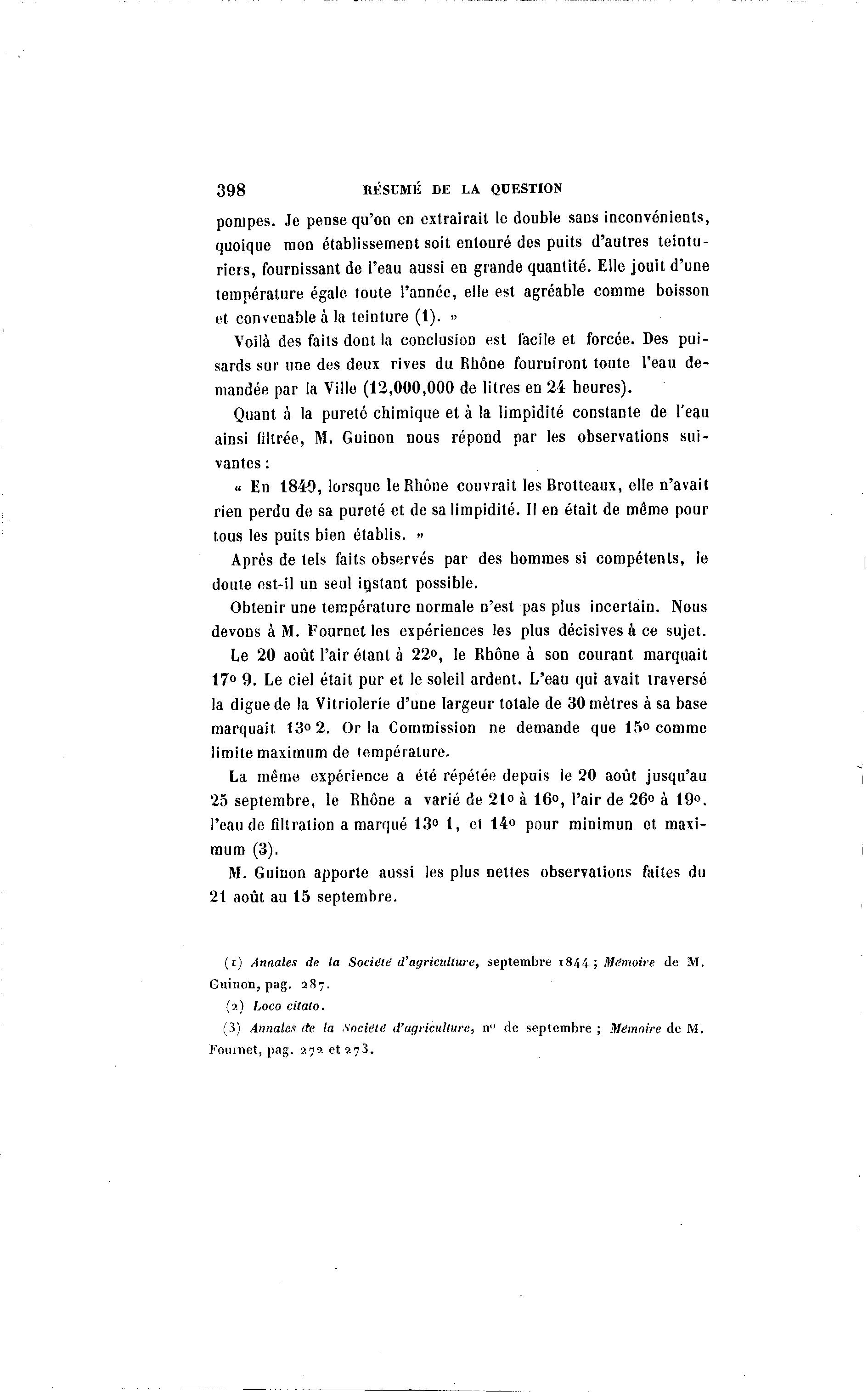 Le 20 août l'air étant à 22°, le Rhône à son courant marquait