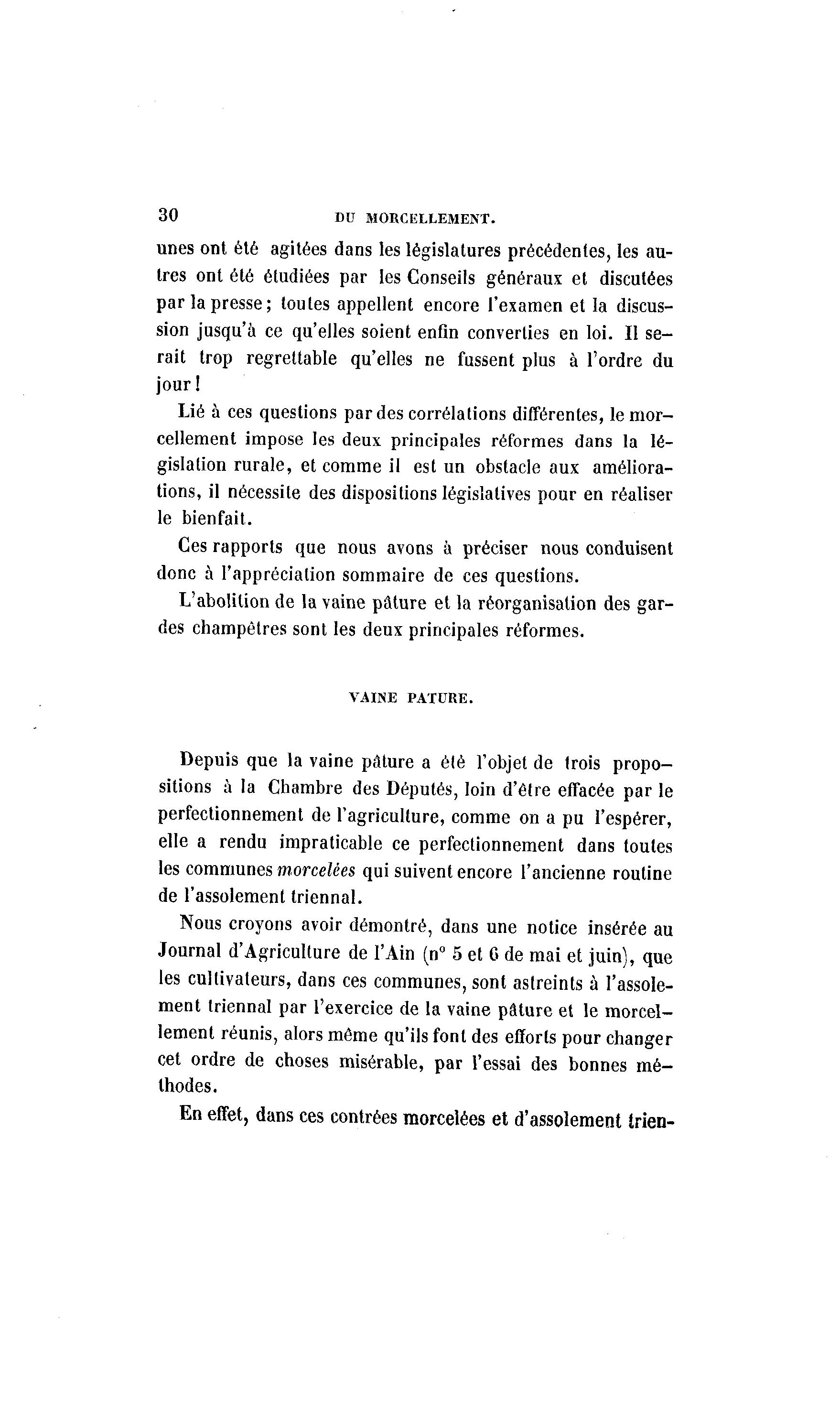 ment triennal par l'exercice de la vaine pâture et le morcel-