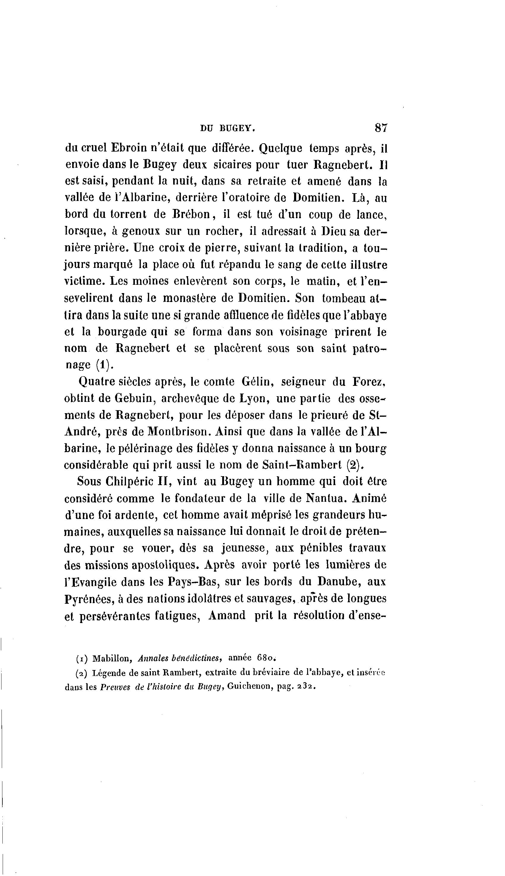 (2) Légende de saint Rambert, extraite du bréviaire de l'abbaye, et insérée