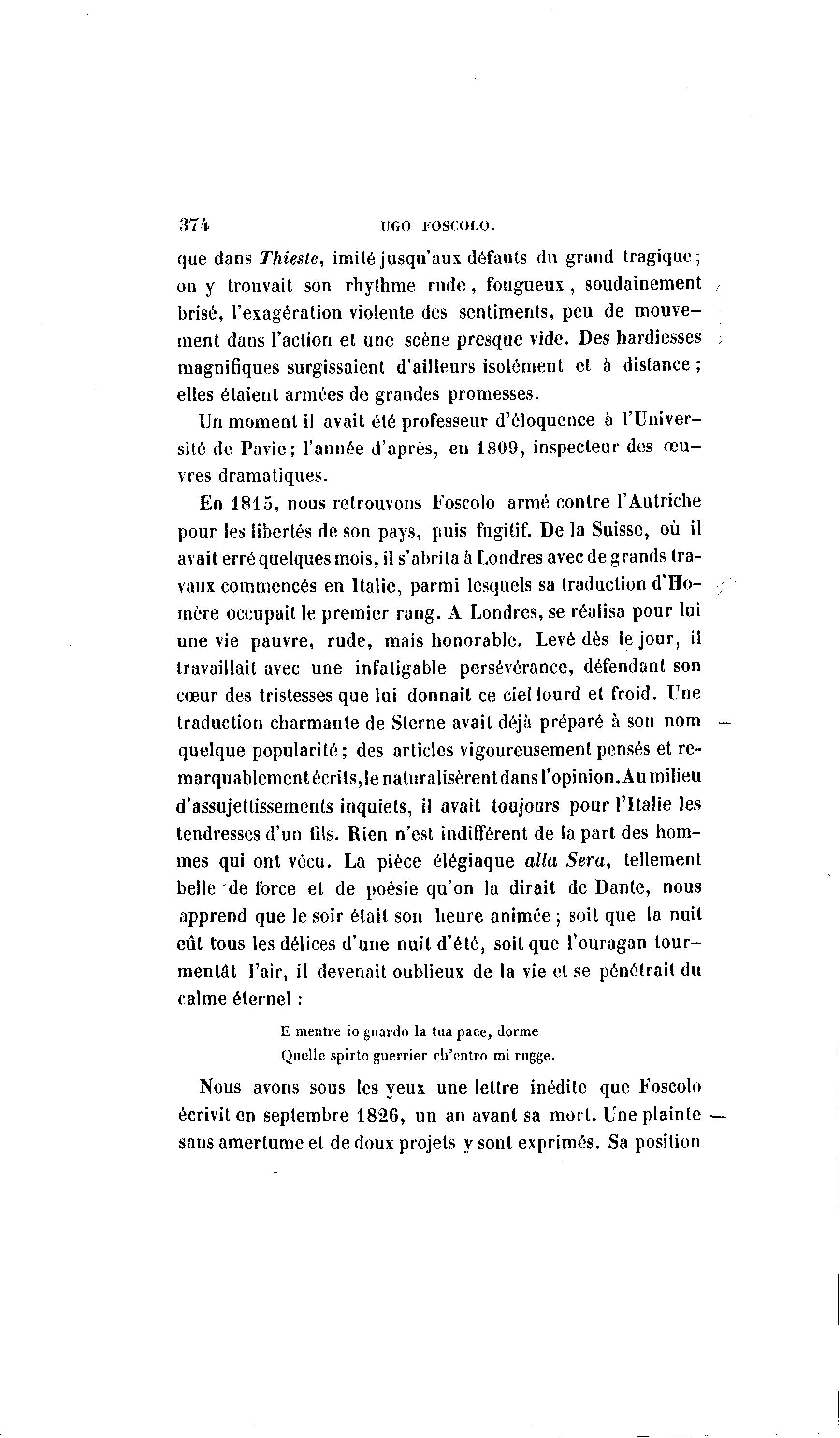 Nous avons sous les yeux une lettre inédile que Foscolo