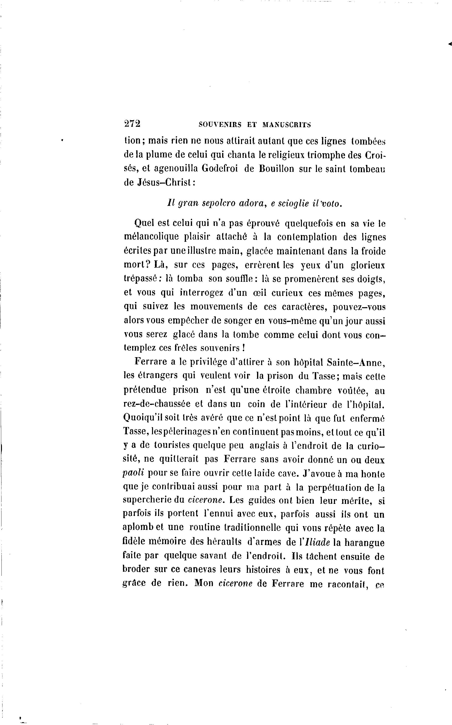 272 SOUVENIRS ET MANUSCRITS