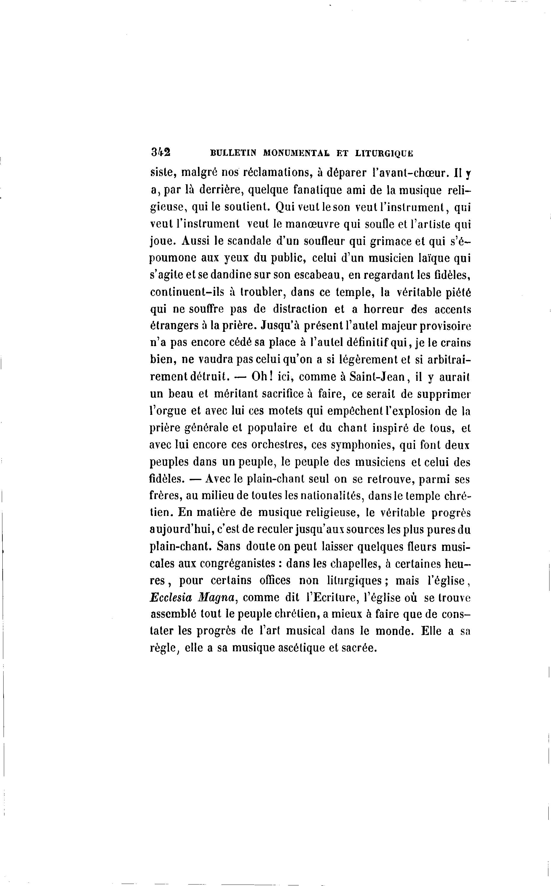 342 BULLETIN MONUMENTAL ET LITURGIQUE siste, malgré nos réclamations, à déparer l'avant-chœur. II y a, par là derrière, quelque fanatique ami de la musique reli- gieuse, qui le soutient. Qui veut le son veut l'instrument, qui veut l'instrument veut le manœuvre qui souile et l'artiste qui joue. Aussi le scandale d'un soudeur qui grimace et qui s'é- poumone aux yeux du public, celui d'un musicien laïque qui s'agite et se dandine sur son escabeau, en regardant les fidèles, continuent-ils à troubler, dans ce temple, la véritable piété qui ne souffre pas de distraction et a horreur des accents étrangers à la prière. Jusqu'à présent l'autel majeur provisoire n'a pas encore cédé sa place à l'autel définitif qui, je le crains bien, ne vaudra pas celui qu'on a si légèrement et si arbitrai- rement détruit. — Oh! ici, comme à Saint-Jean, il y aurait un beau et méritant sacrifice à faire, ce serait de supprimer l'orgue et avec lui ces motets qui empêchent l'explosion de la prière générale el populaire et du chant inspiré de tous, et avec lui encore ces orchestres, ces symphonies, qui font deux peuples dans un peuple, le peuple des musiciens et celui des fidèles. — Avec le plain-chant seul on se retrouve, parmi ses frères, au milieu de toutes les nationalités, dans le temple chré- tien. En matière de musique religieuse, le véritable progrès aujourd'hui, c'est de reculer jusqu'aux sources les plus pures du plain-chant. Sans doute on peut laisser quelques fleurs musi- cales aux congréganistes : dans les chapelles, à certaines heu- res , pour certains offices non liturgiques ; mais l'église, Ecclesia Magna, comme dit l'Ecriture, l'église où se trouve assemblé tout le peuple chrétien, a mieux à faire que de cons- tater les progrès de l'art musical dans le monde. Elle a sa règle, elle a sa musique ascétique et sacrée.