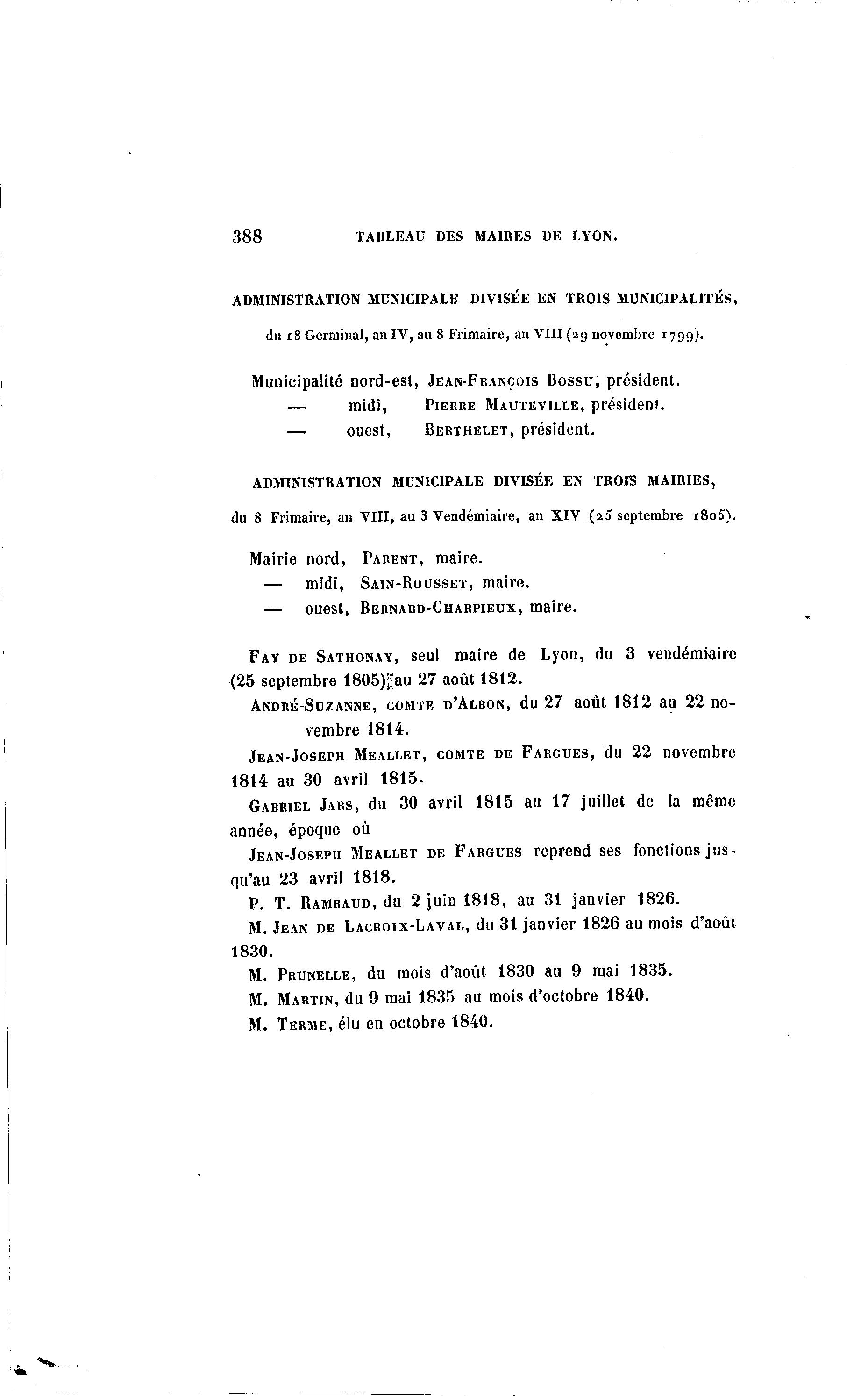 FAY DE SATHONAY, seul maire de Lyon, du 3 vendémiaire