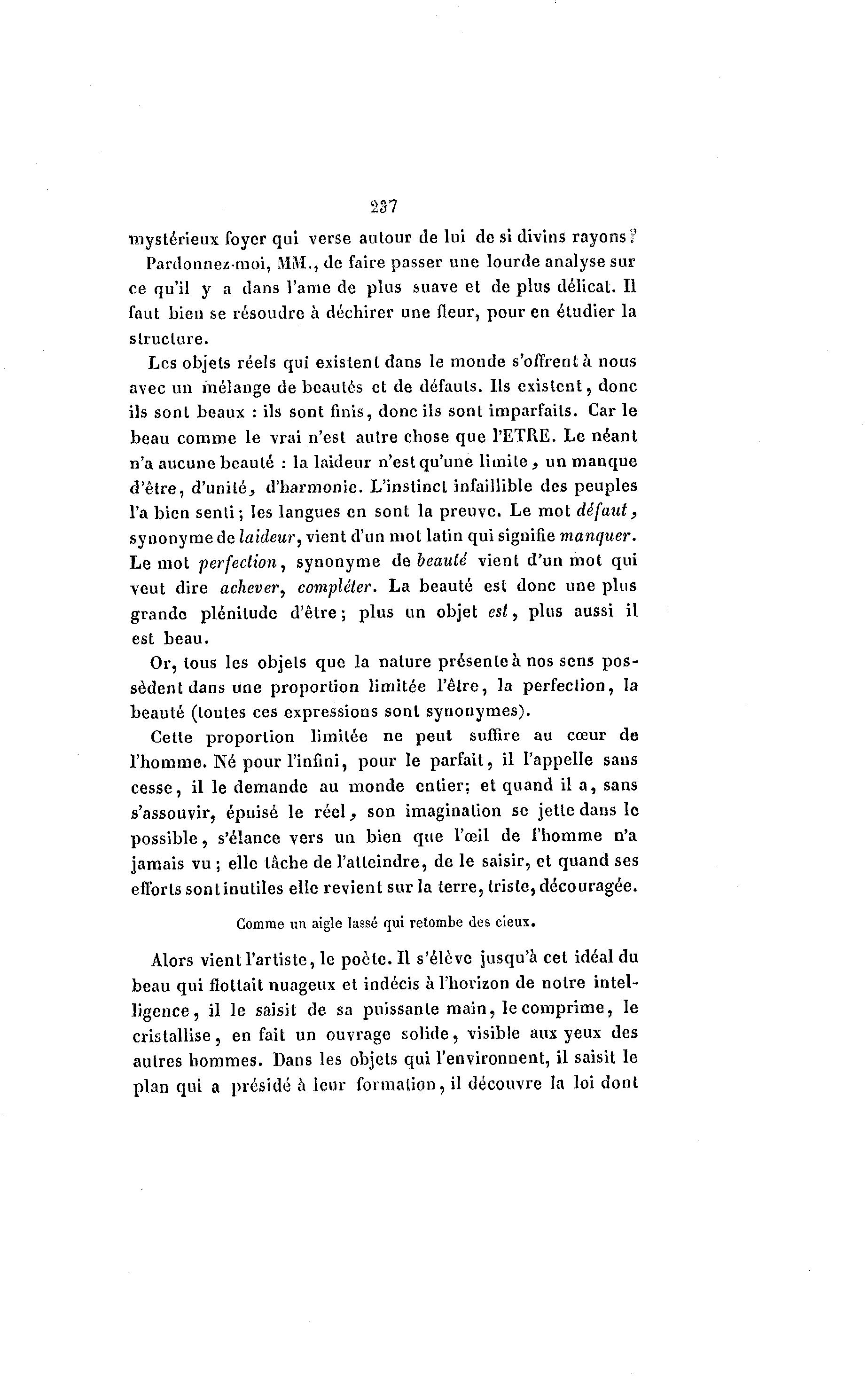 Alors vient l'artiste, le poète. Il s'élève jusqu'à cet idéal du