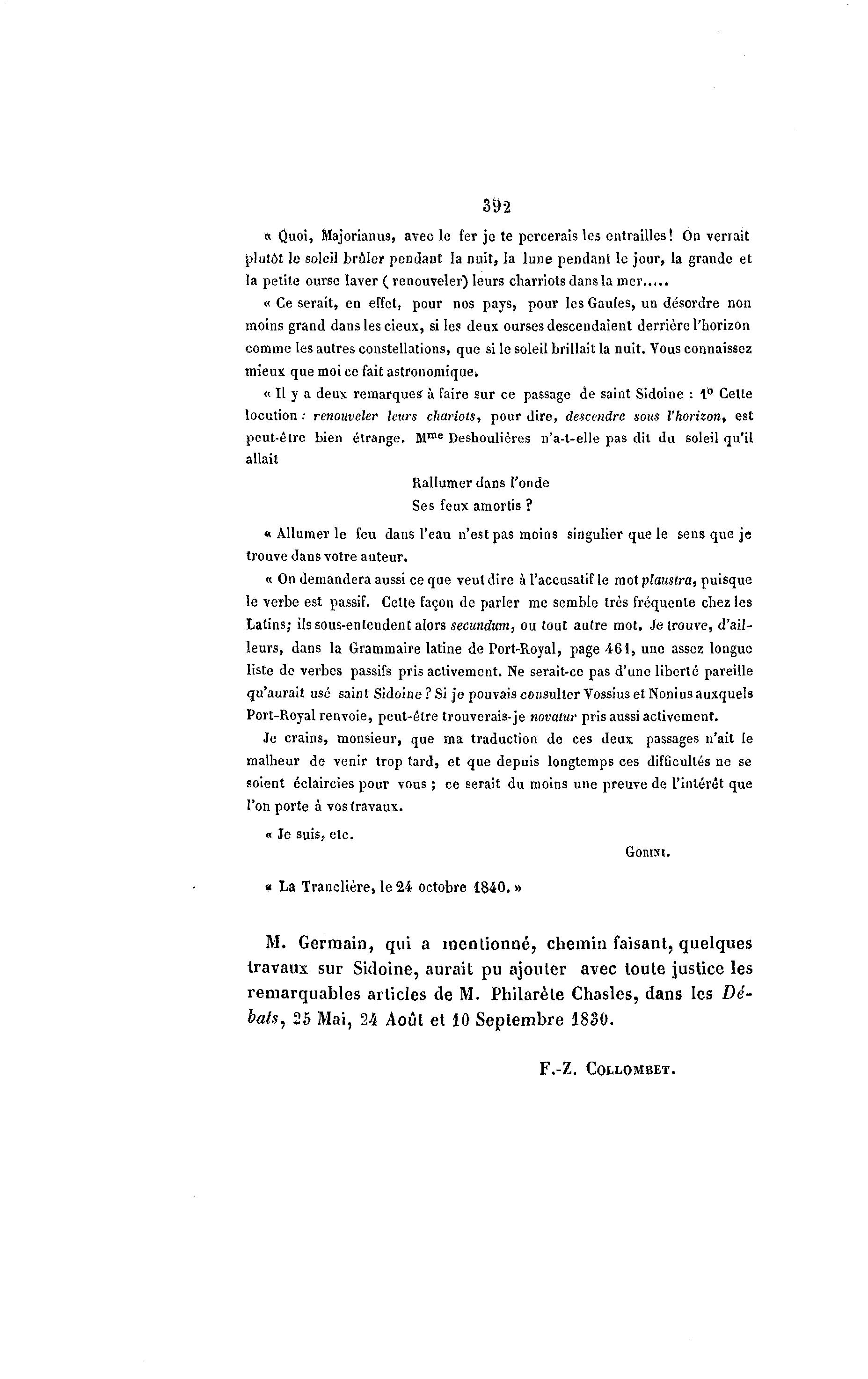 « Il y a deux remarques à faire sur ce passage de saint Sidoine : 1° Cette
