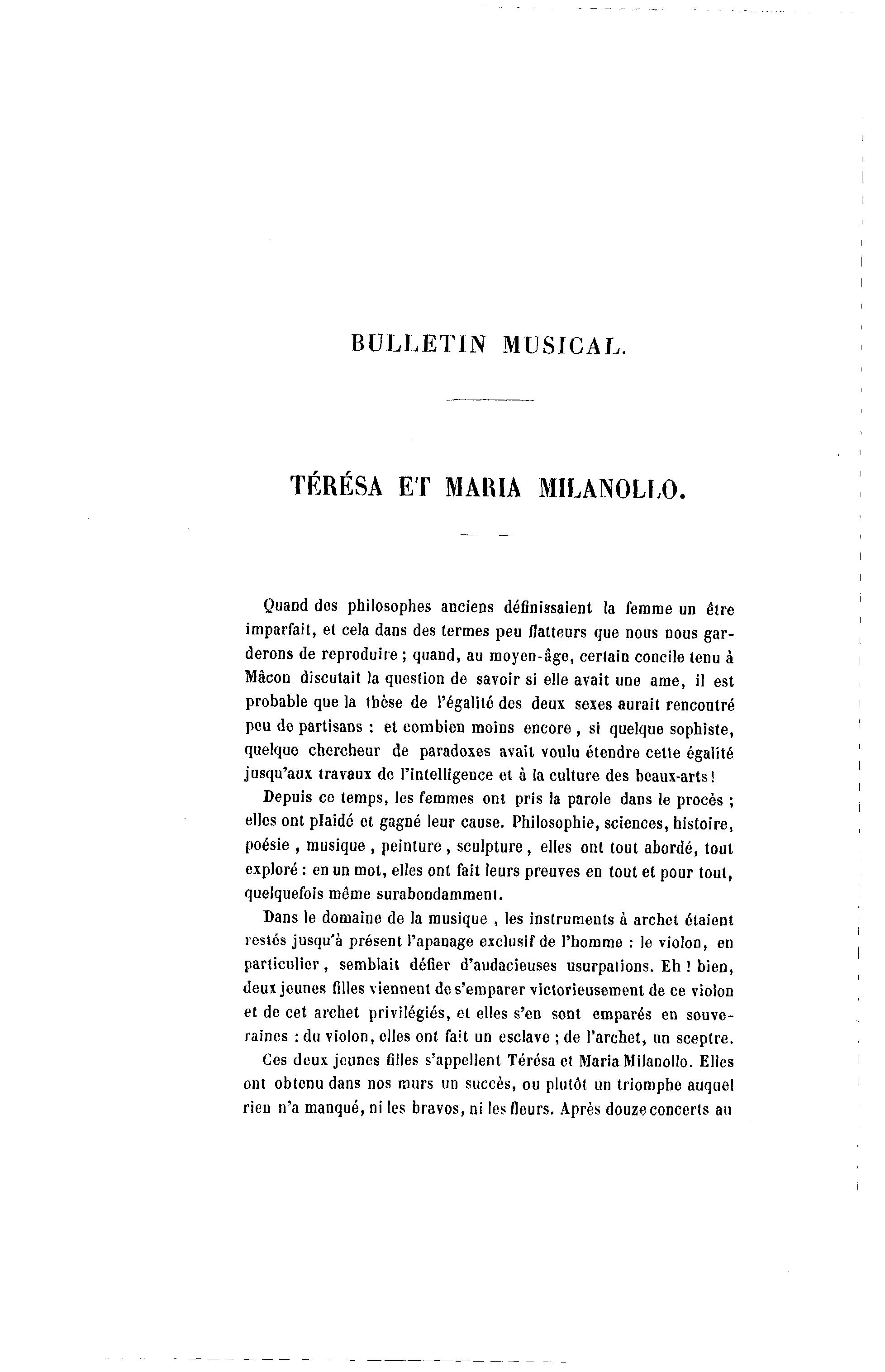 restés jusqu'à présent l'apanage exclusif de l'homme : le violon, en