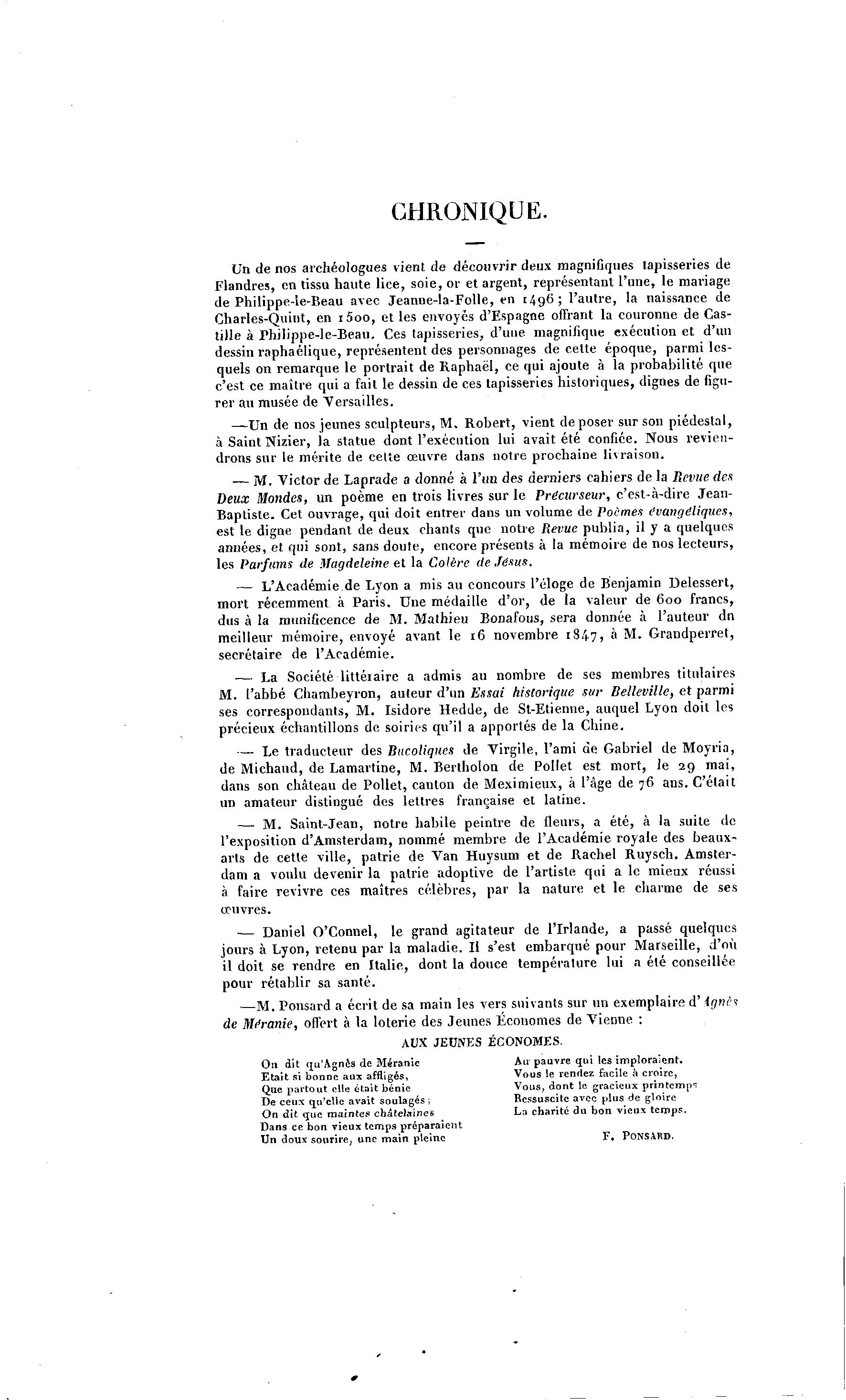 — M . Victor de Laprade a donné à l'un des derniers cahiers de la Revue des
