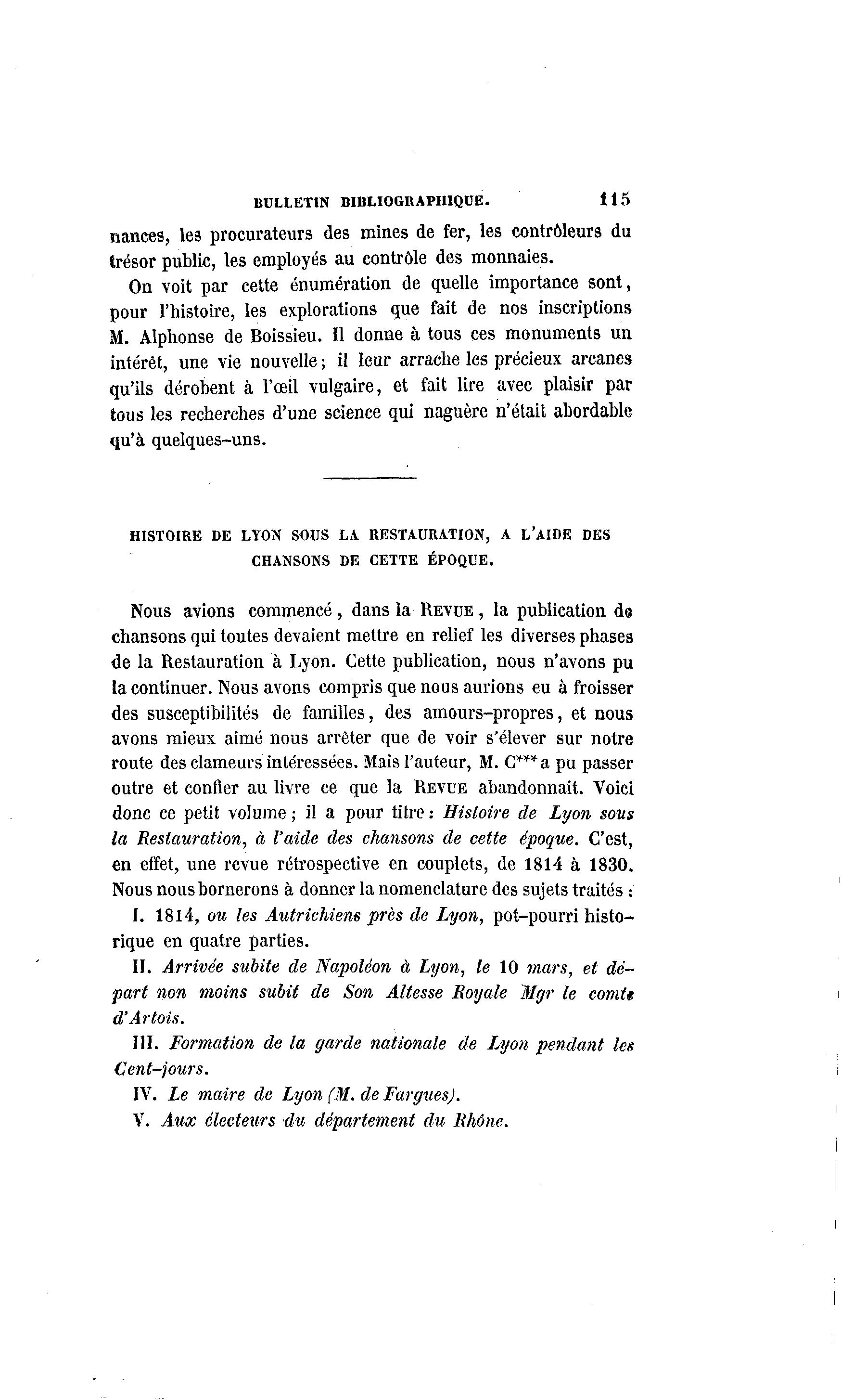 de la Restauration à Lyon. Cette publication, nous n'avons pu