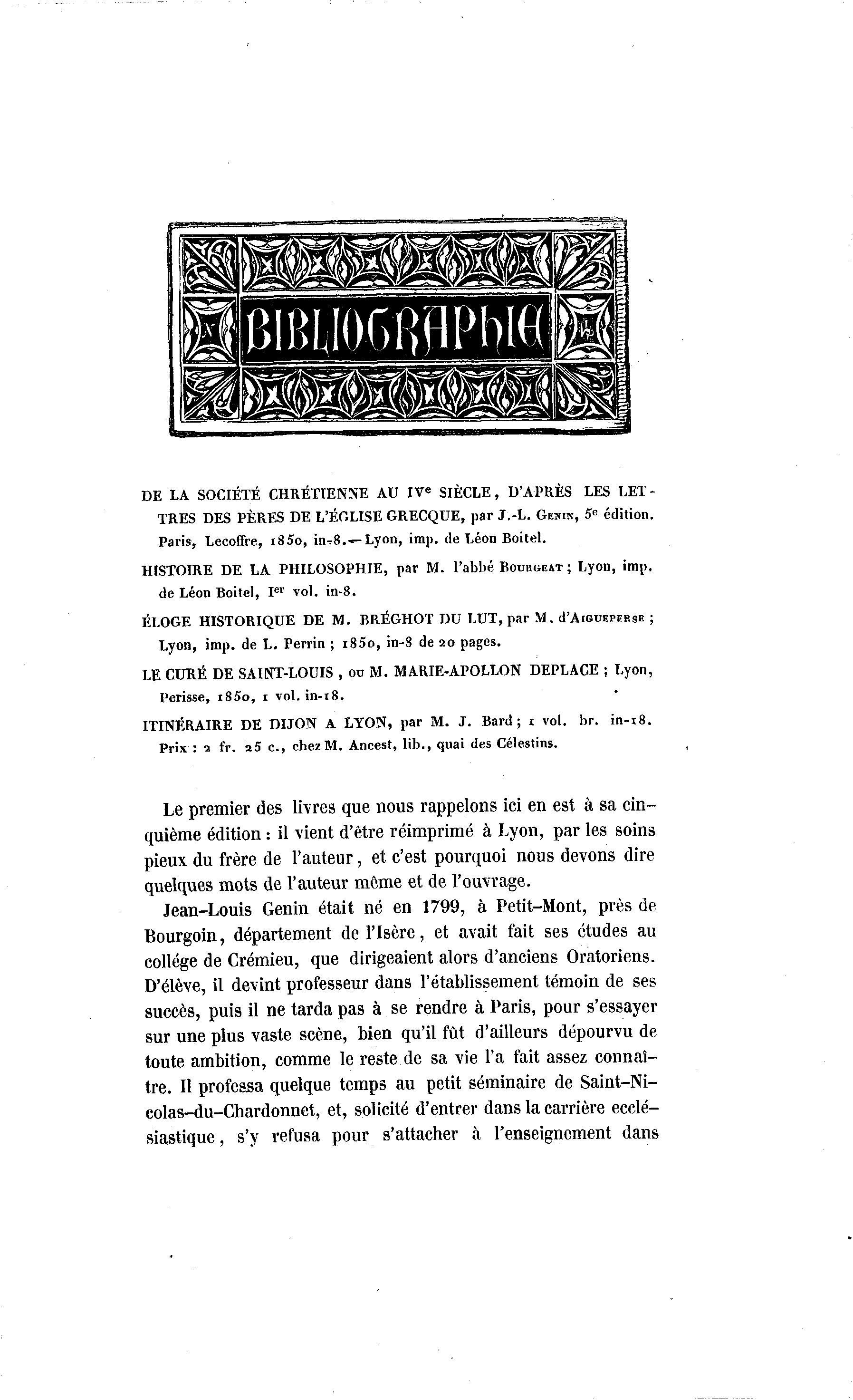 Paris, Lecoffre, i85o, in^8.—Lyon, imp. de Léon Boitel.