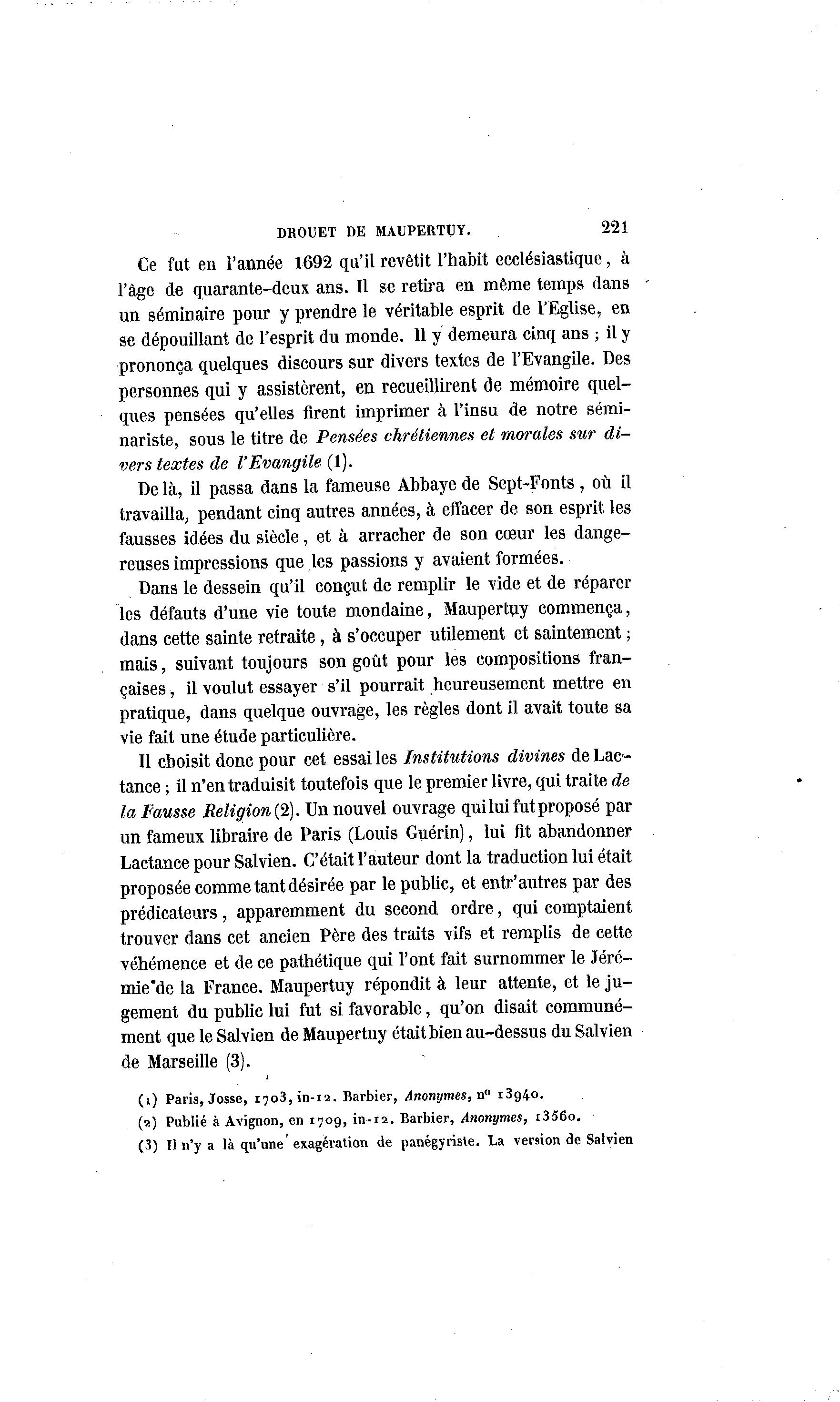 (•2) Publié à Avignon, en 1709, in-12. Barbier, Anonymes, i356o.