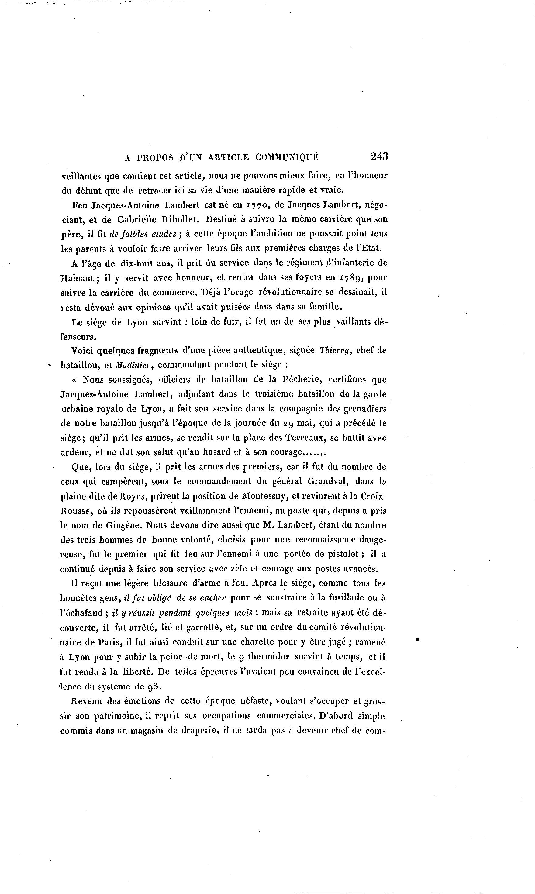 A PROPOS D'UN ARTICLE COMMUNIQUÉ 243