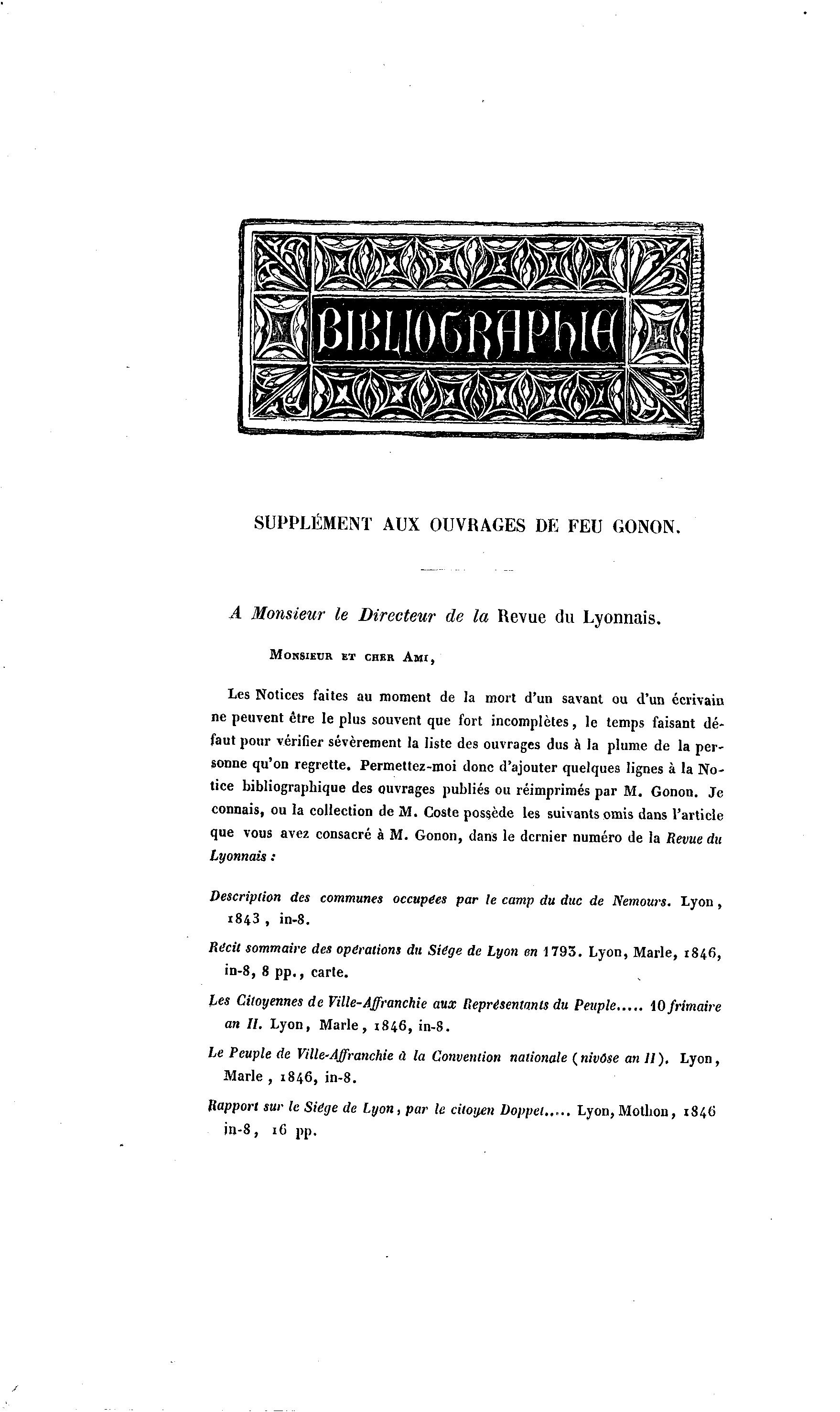 tice bibliographique des ouvrages publiés ou réimprimés par M. Gonon. Je