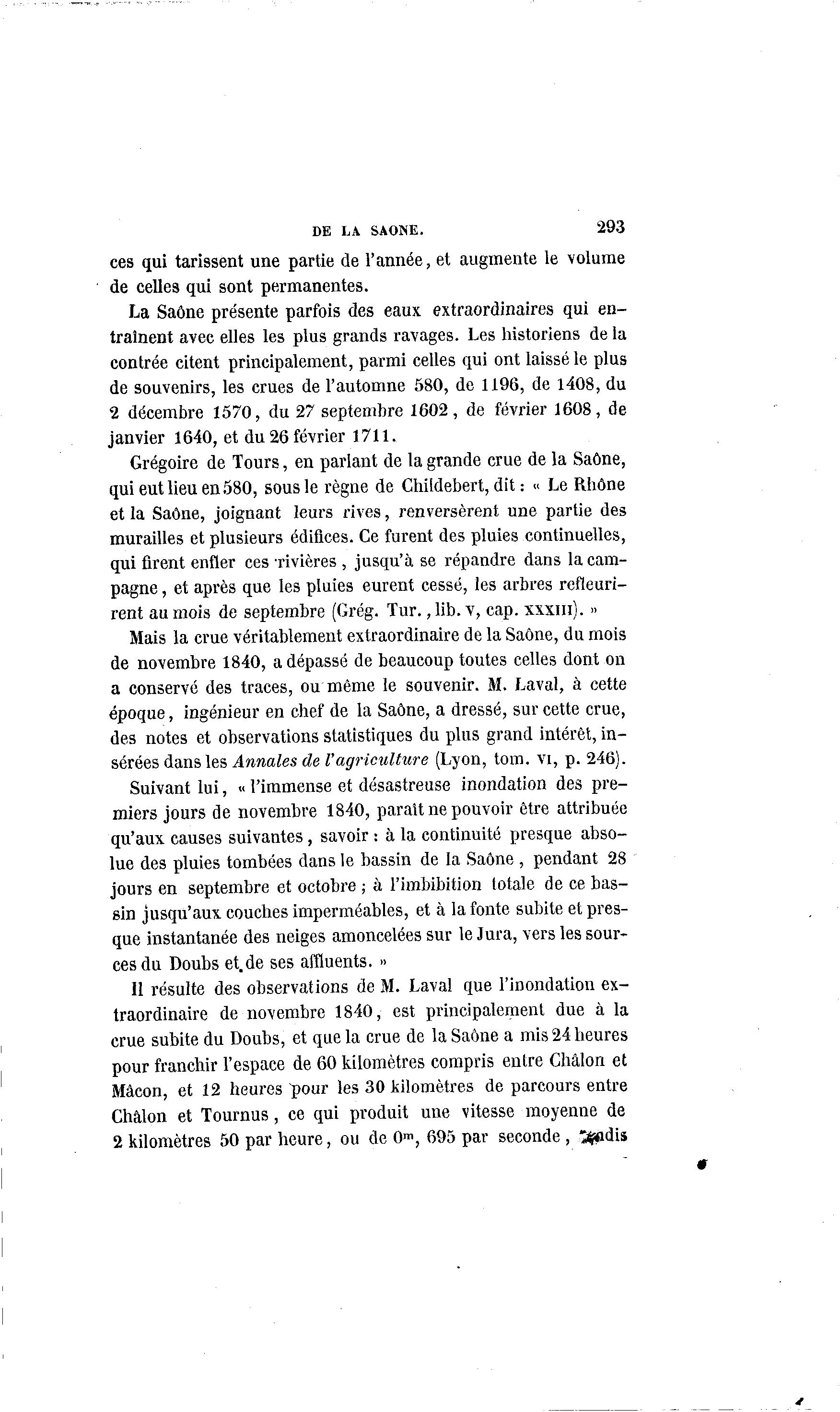 Grégoire de Tours, en parlant de la grande crue de la Saône,