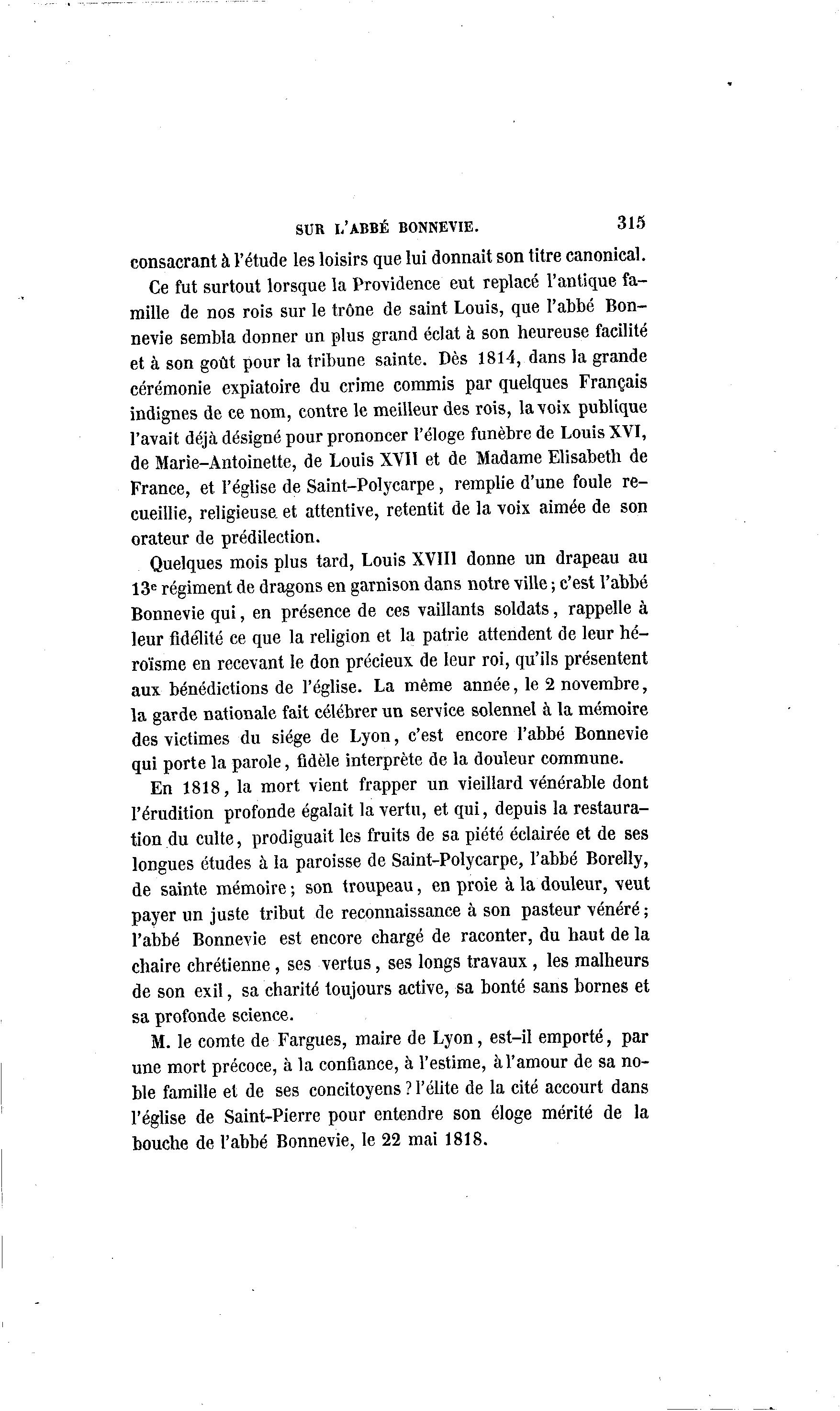 bouche de l'abbé Bonnevie, le 22 mai 1818.