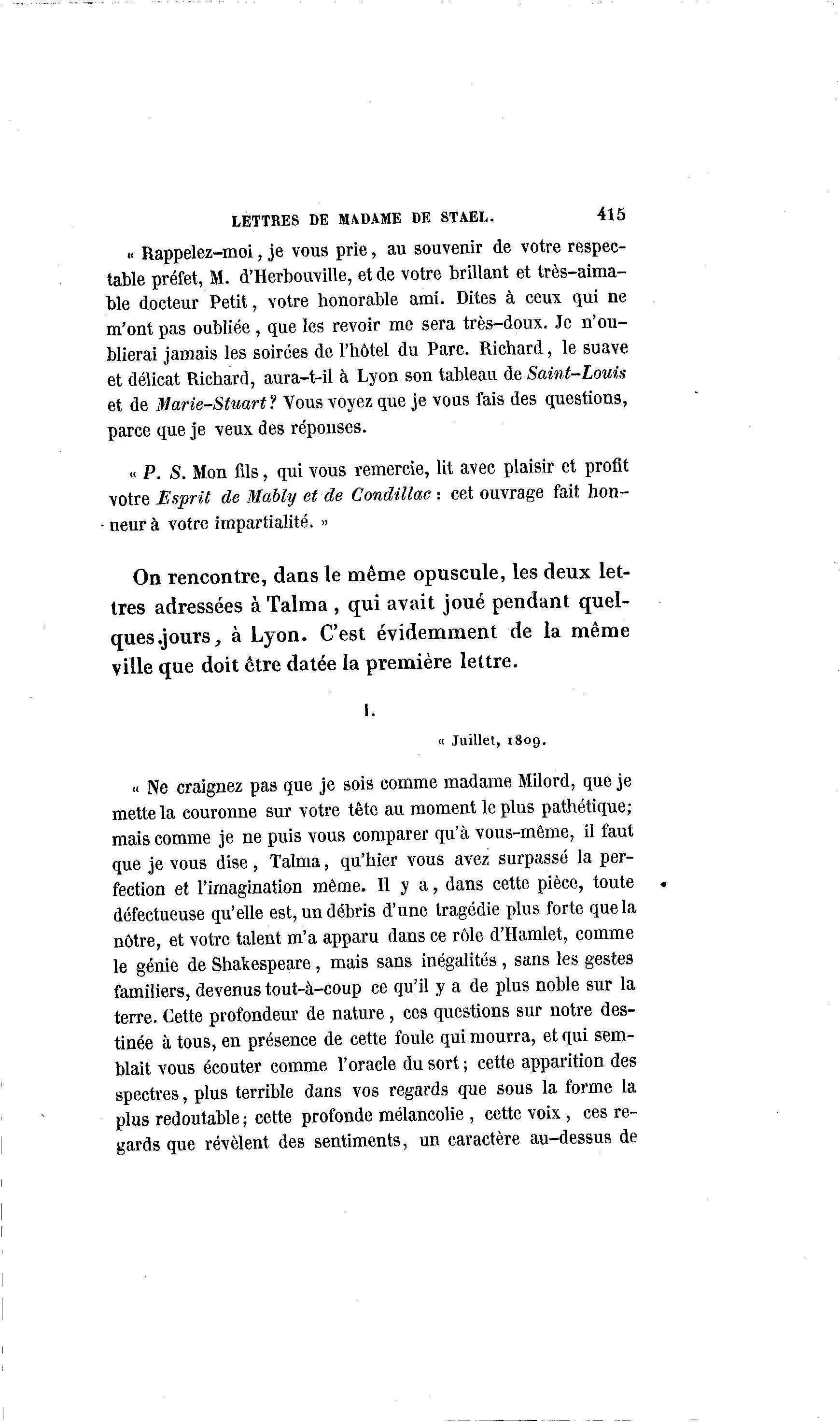 que je vous dise, Talma, qu'hier vous avez surpassé la per-