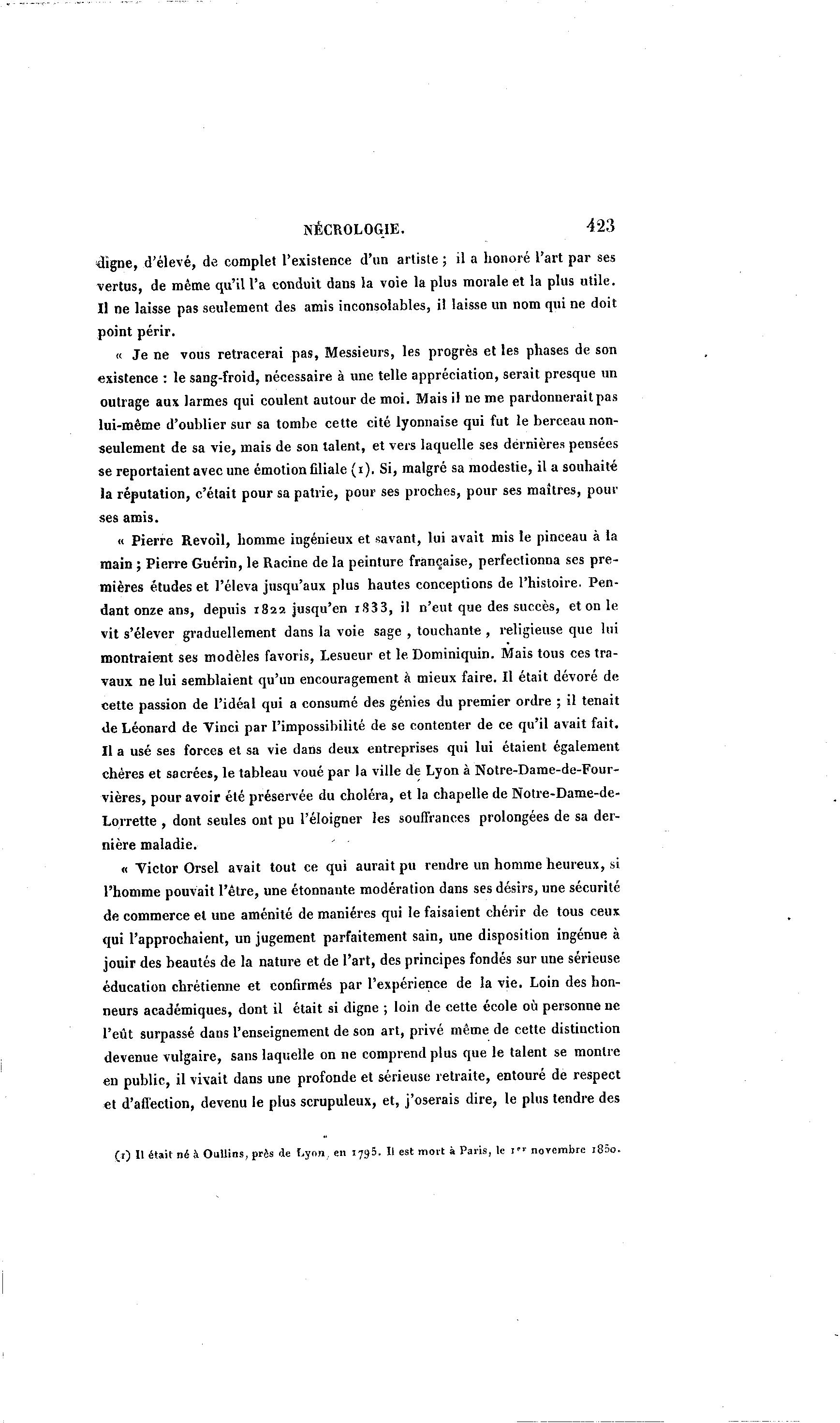 (r) Il était né à Oullins, près de Lyon, en 1795. Il est movt à Paris, le i p r novembre i85o.