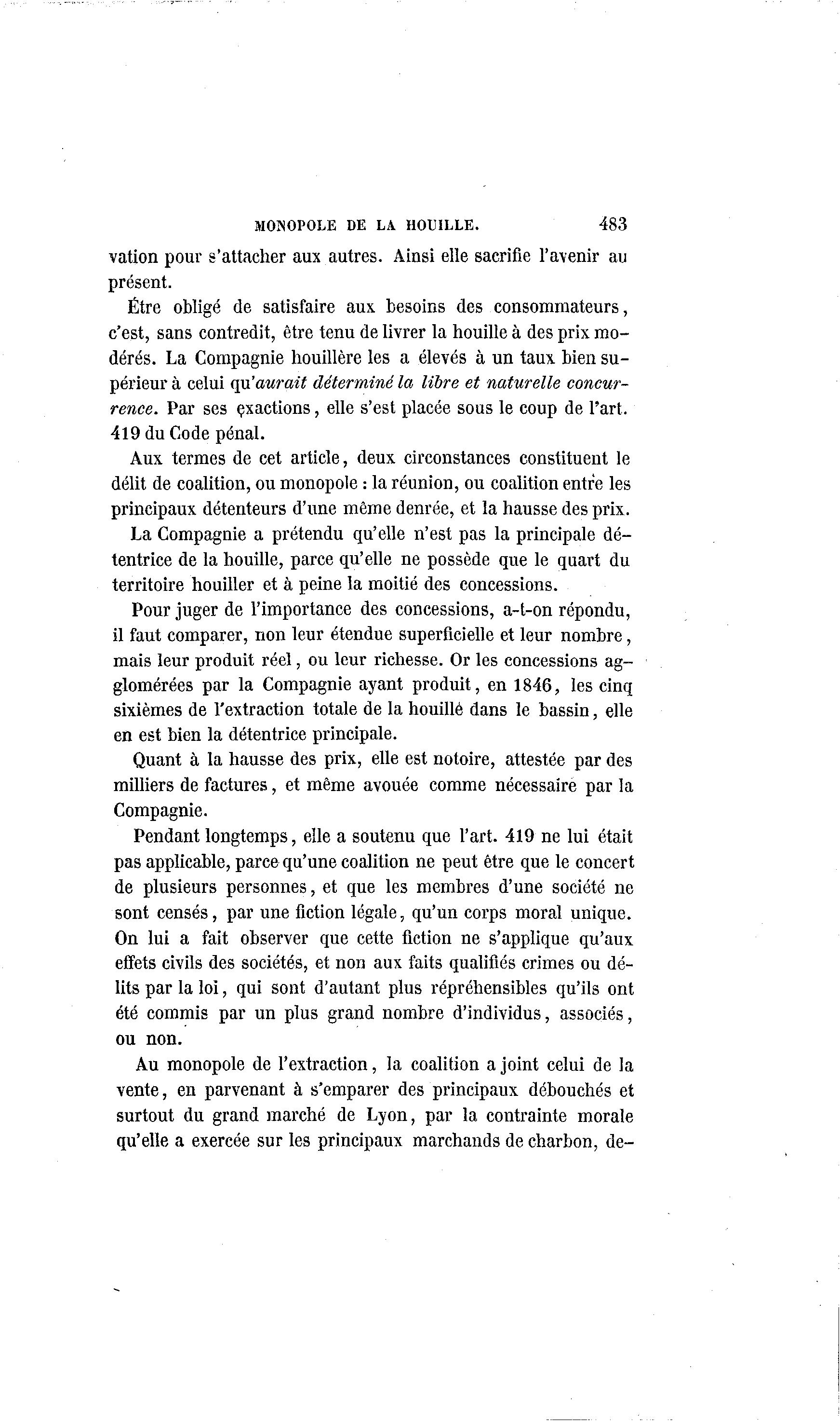 c'est, sans contredit, être tenu de livrer la houille à des prix mo-
