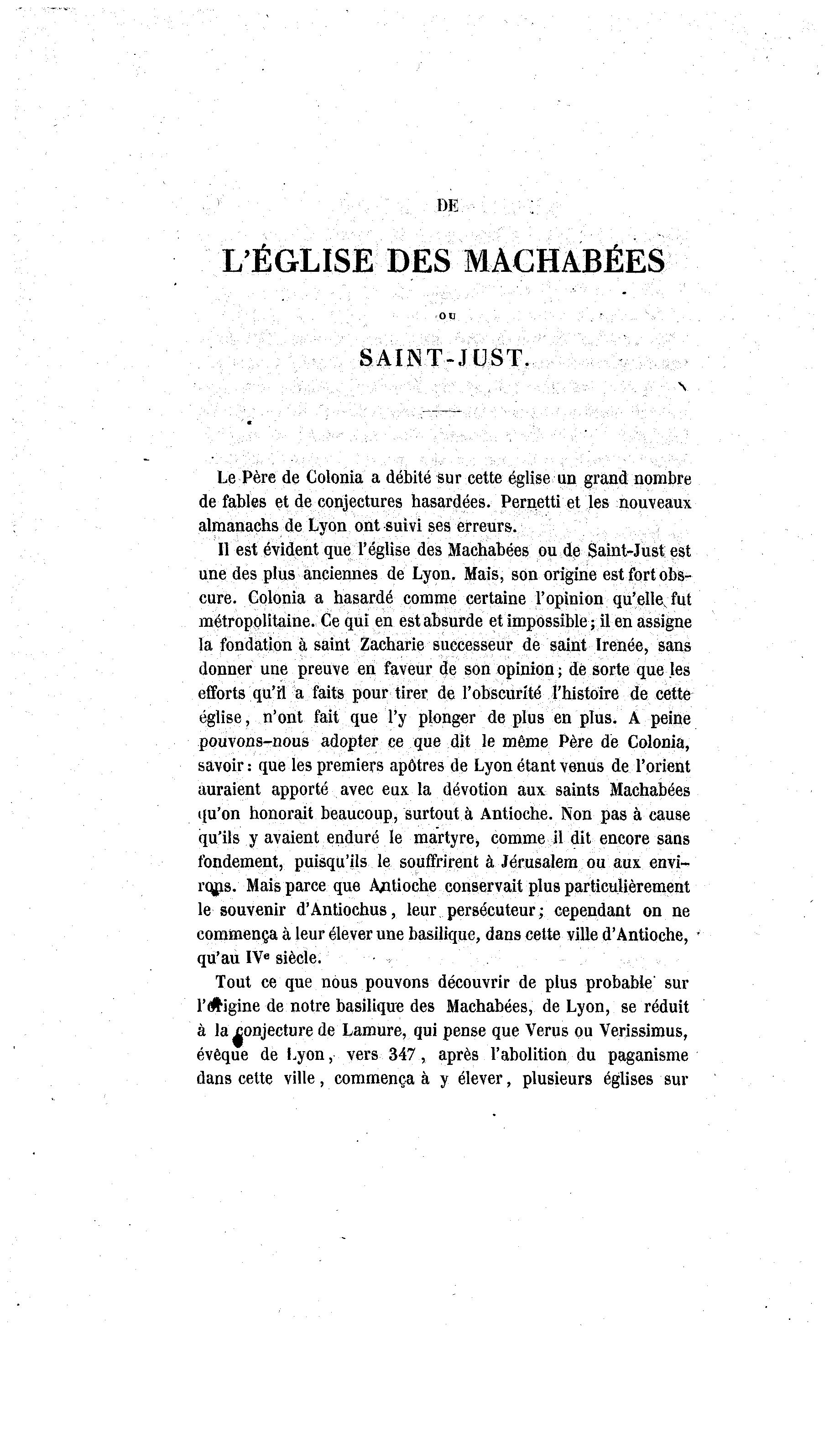 l'^igine de notre basilique des Machabees, de Lyon, se réduit