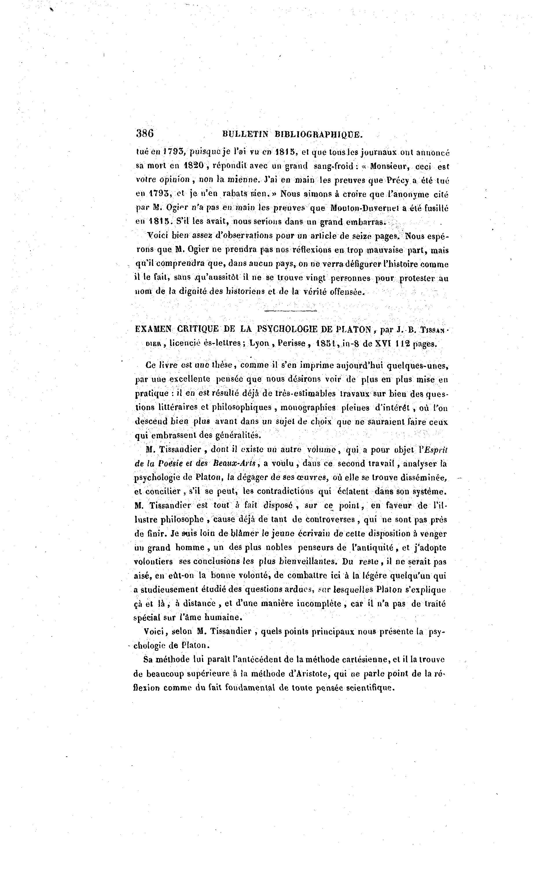 EXAMEN CRITIQUE DE LA PSYCHOLOGIE DE PLATON , par J. B. TISSAS-