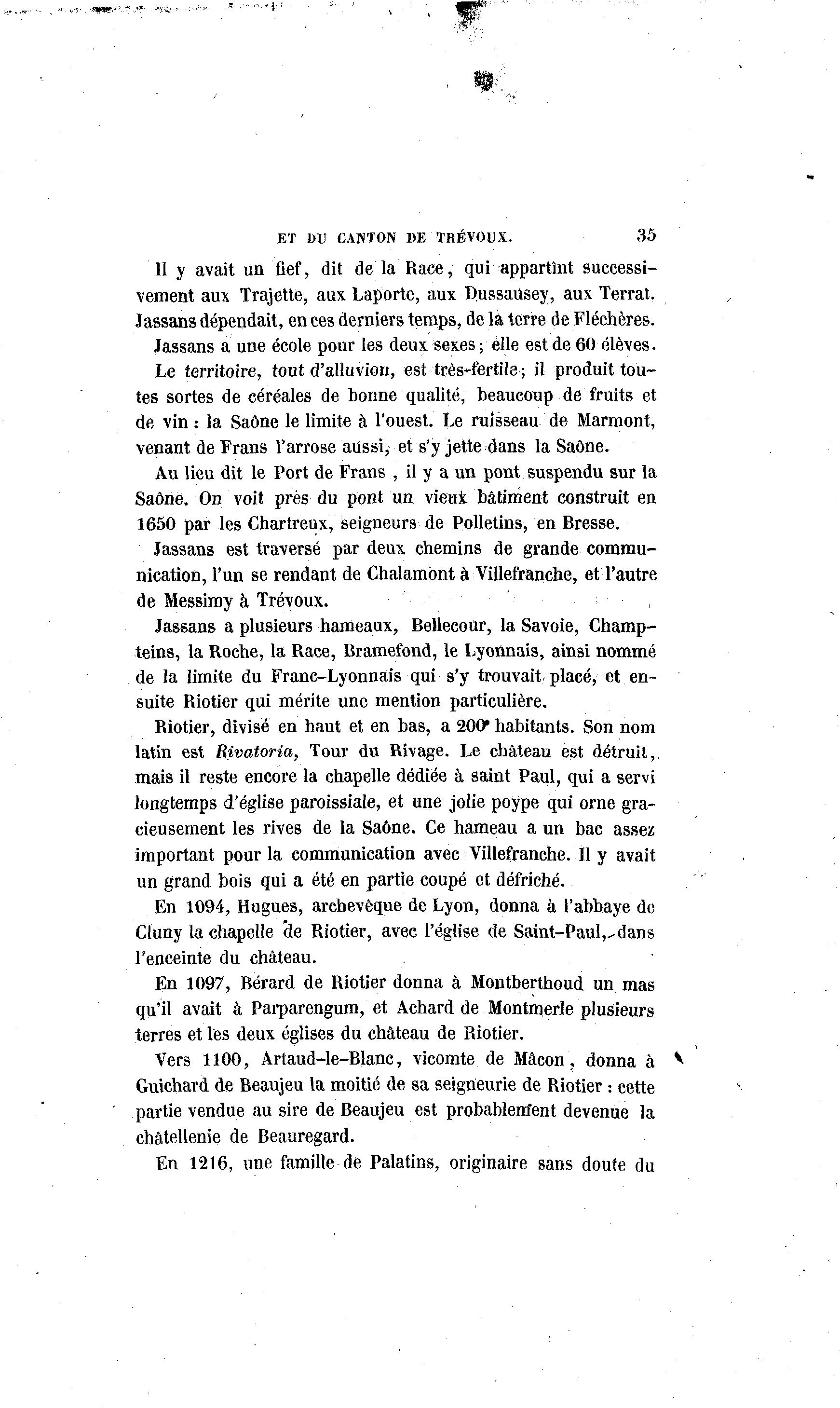 teins, la Roche, la Race, Bramefond, le Lyonnais, ainsi nommé