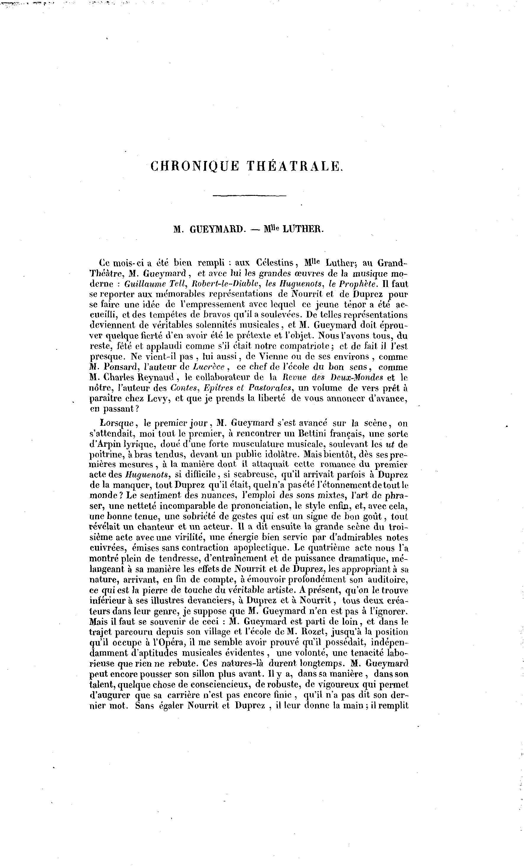 Théâtre, M. Gueymard , et avec lui les grandes œuvres de la musique mo-