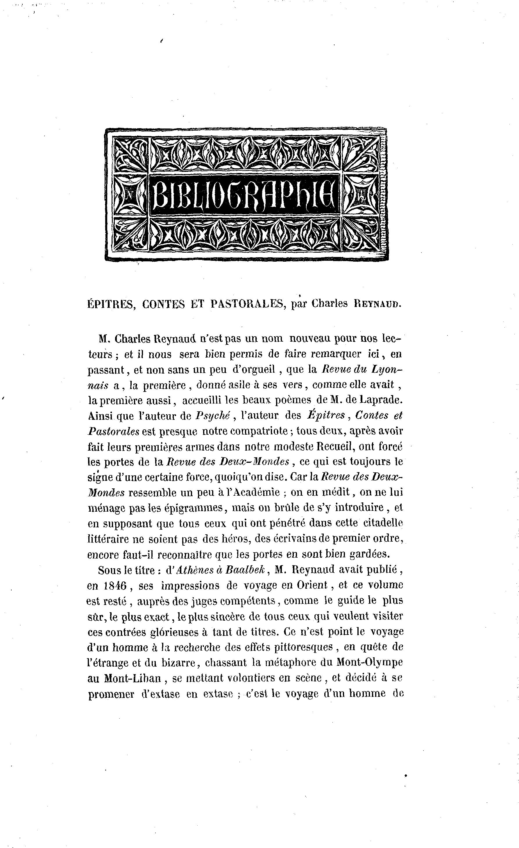Sous le titre : d'Athènes à Baalbek, M. Reynaud avait publié ,