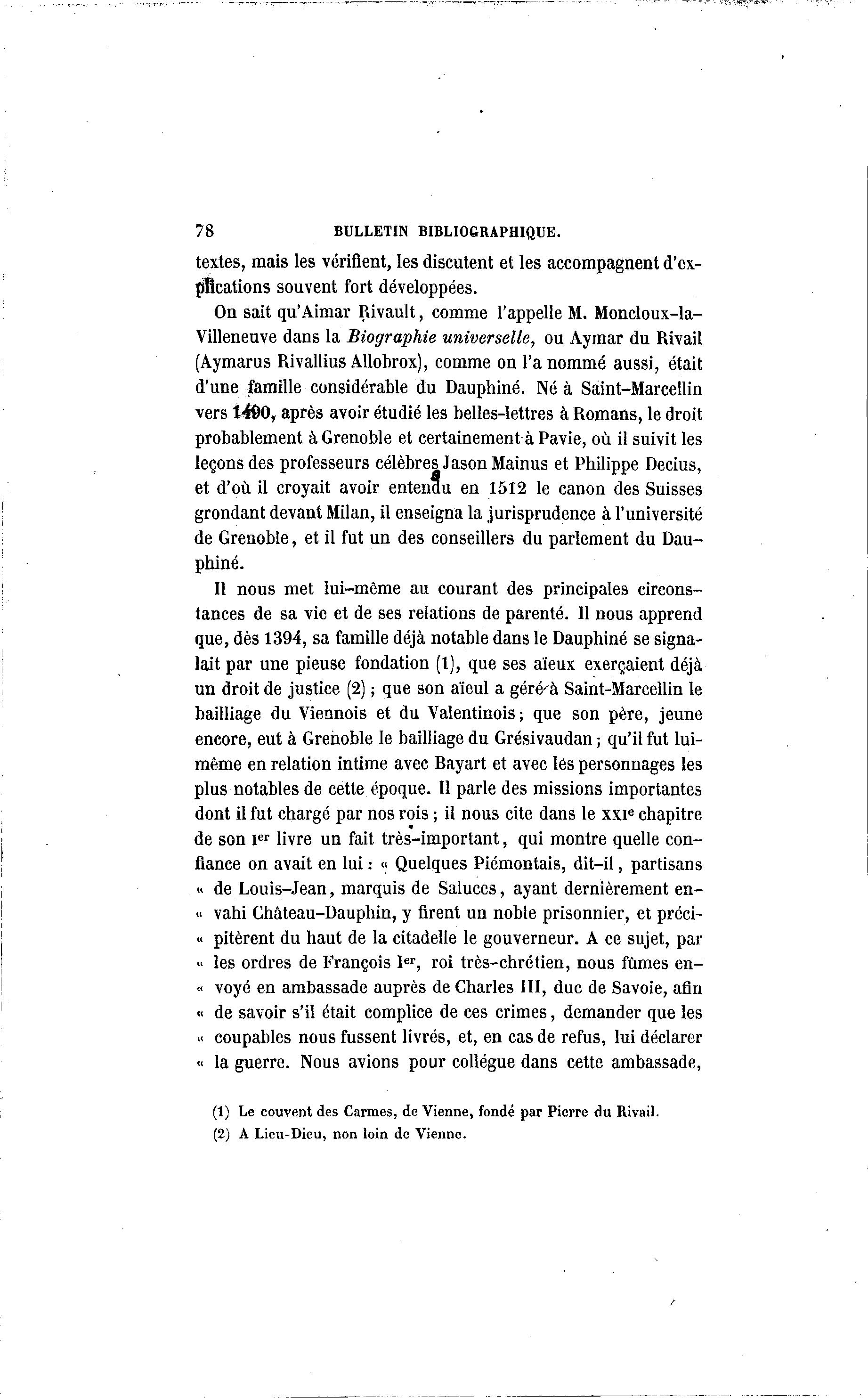 78 BULLETIN BIBLIOGRAPHIQUE.