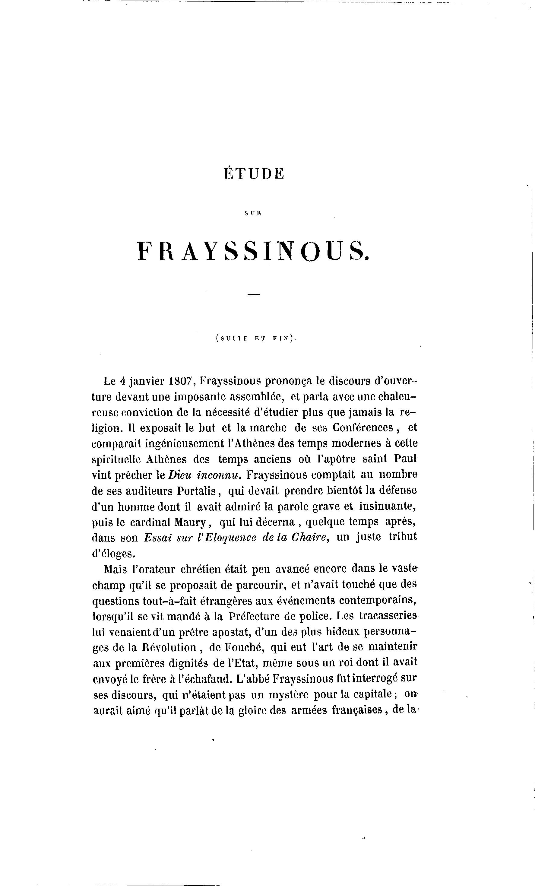 vint prêcher le Dieu inconnu. Frayssinous comptait au nombre