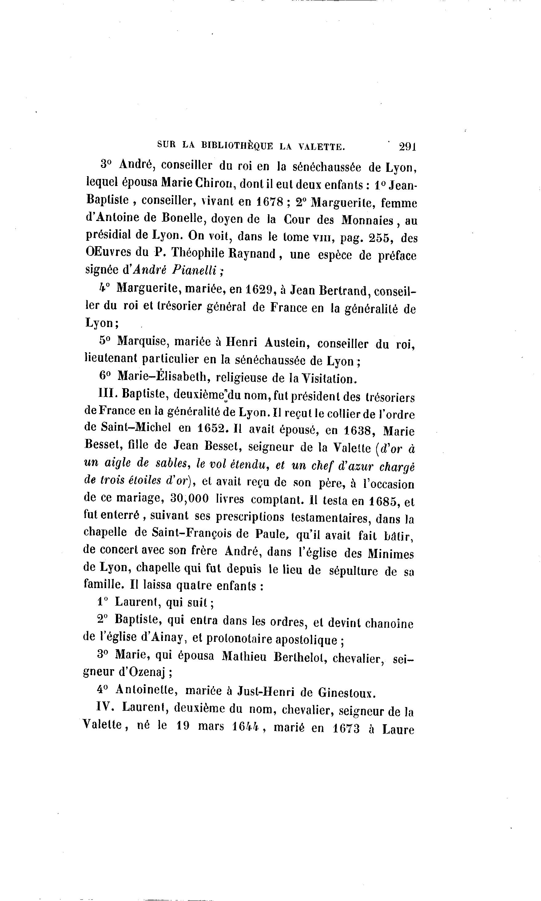 SUR LA BIBLIOTHÈQUE LA VALETTE. 291