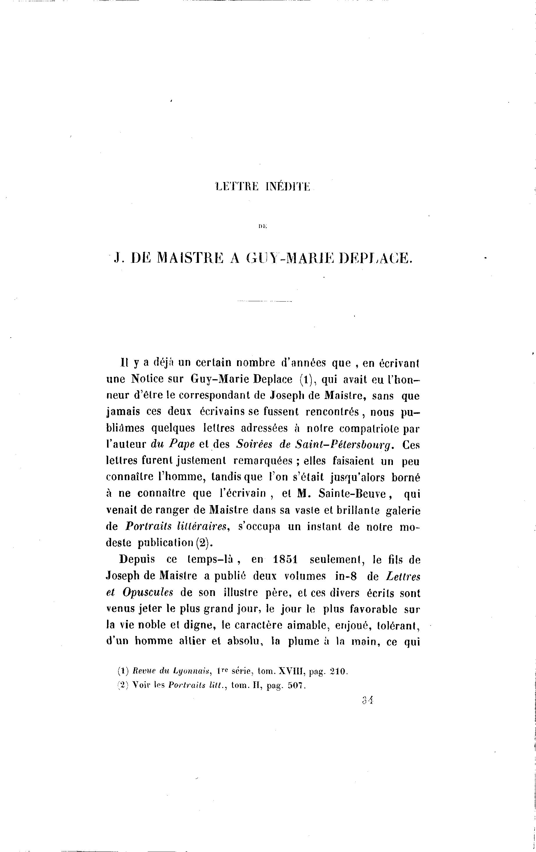 neur d'être le correspondant de Joseph de Maistre, sans que