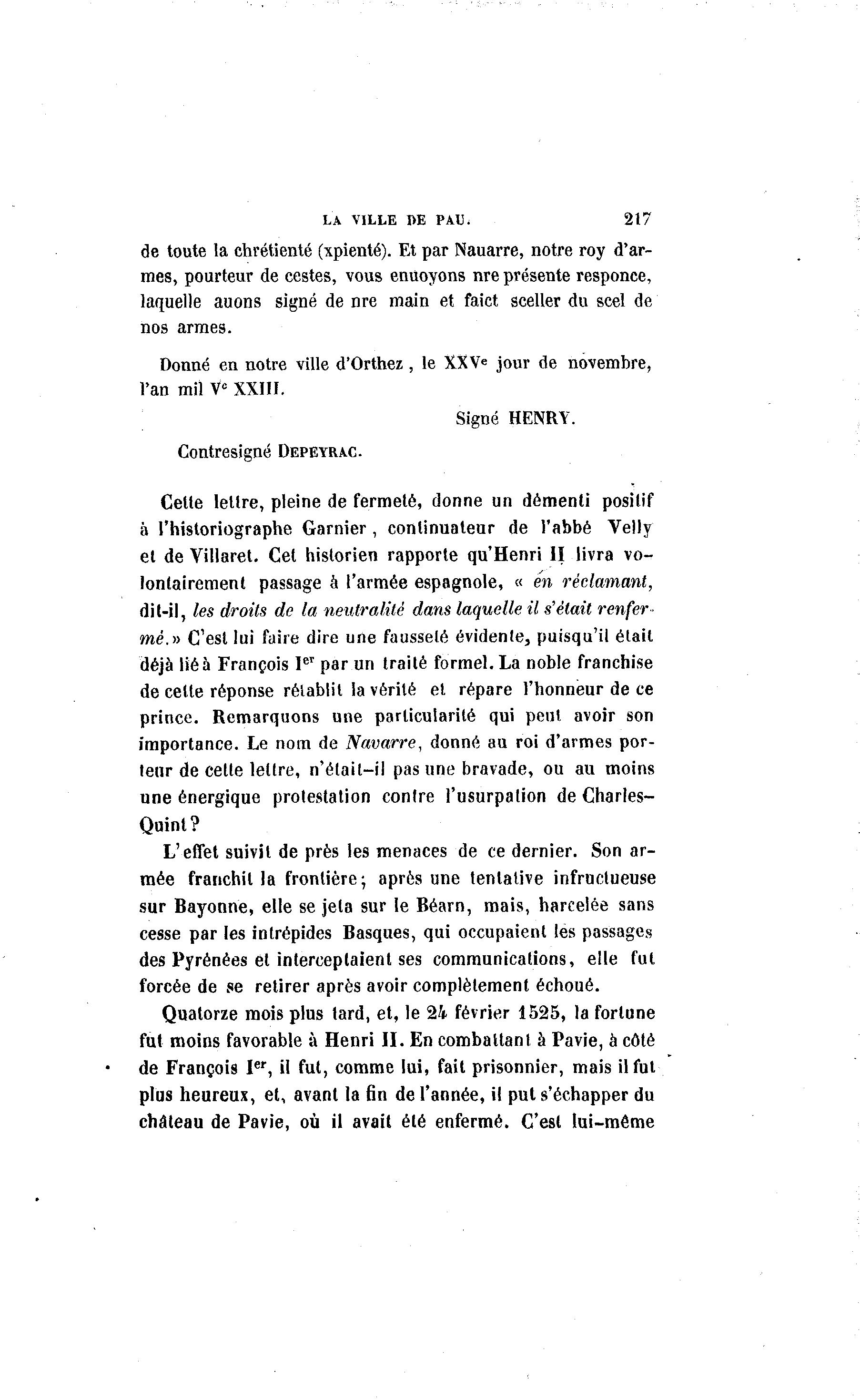 Donné en notre ville d'Orthez, le XXV« jour de novembre,