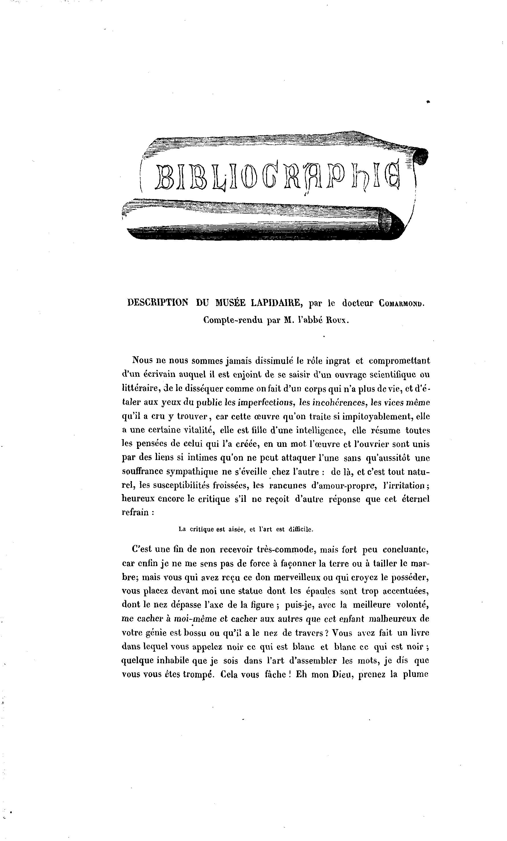 DESCRIPTION DU MUSÉE LAPIDAIRE, par le docteur COMARMOND.