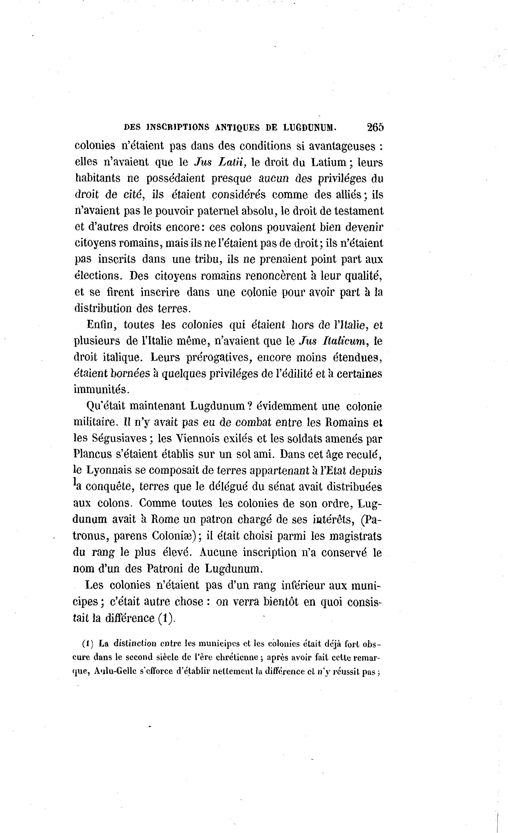 DES INSCRIPTIONS ANTIQUES DE LUGDUNUM. 265