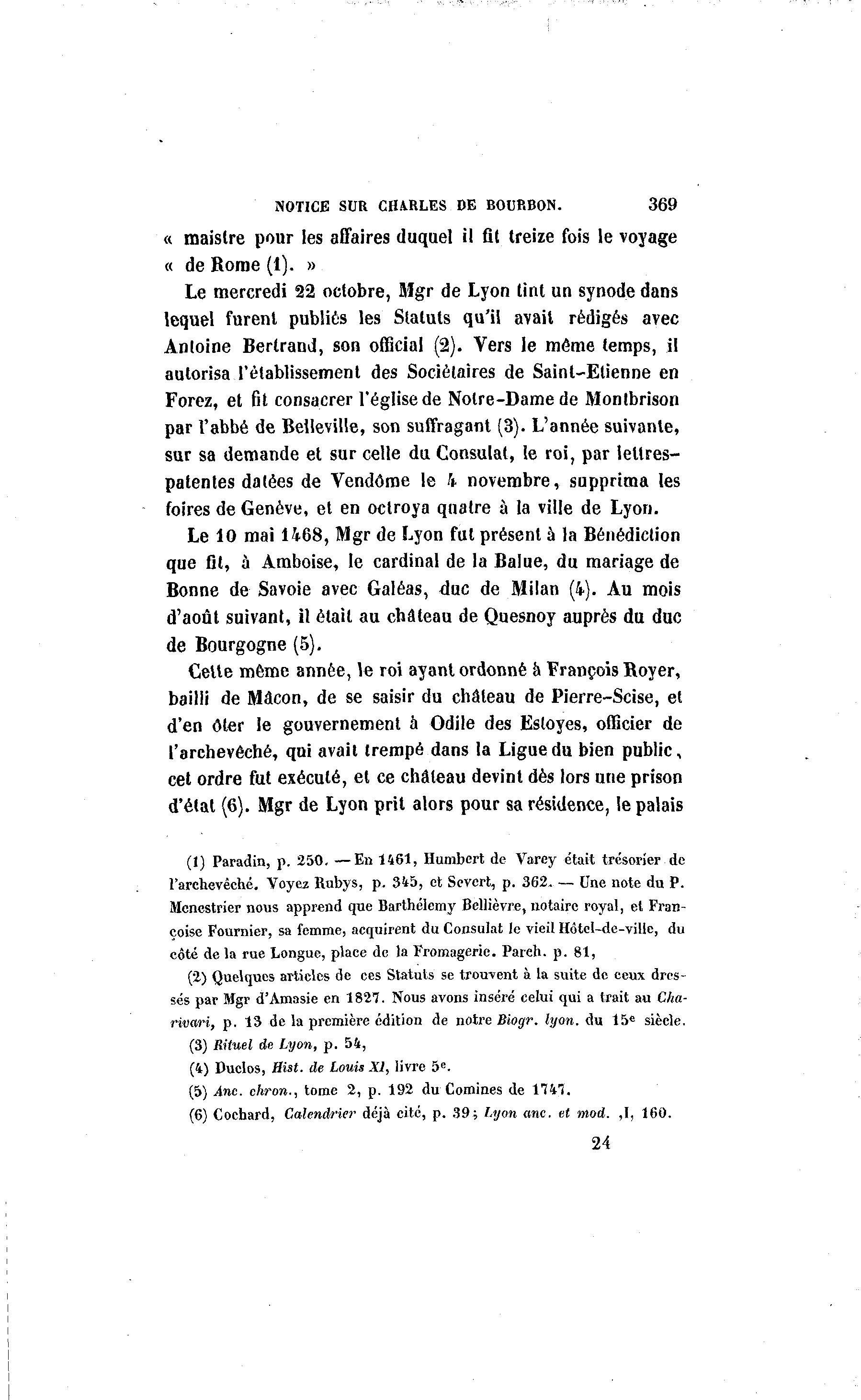 (1) Paradin, p. 250. —En 1461, Humbert de Varcy était trésorier. de