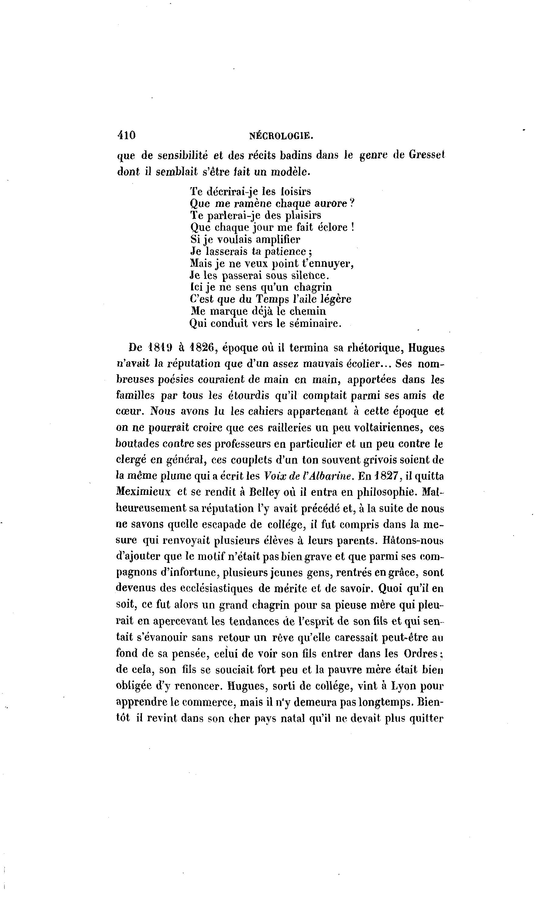 obligée d'y renoncer. Hugues, sorti de collège, vint à Lyon pour