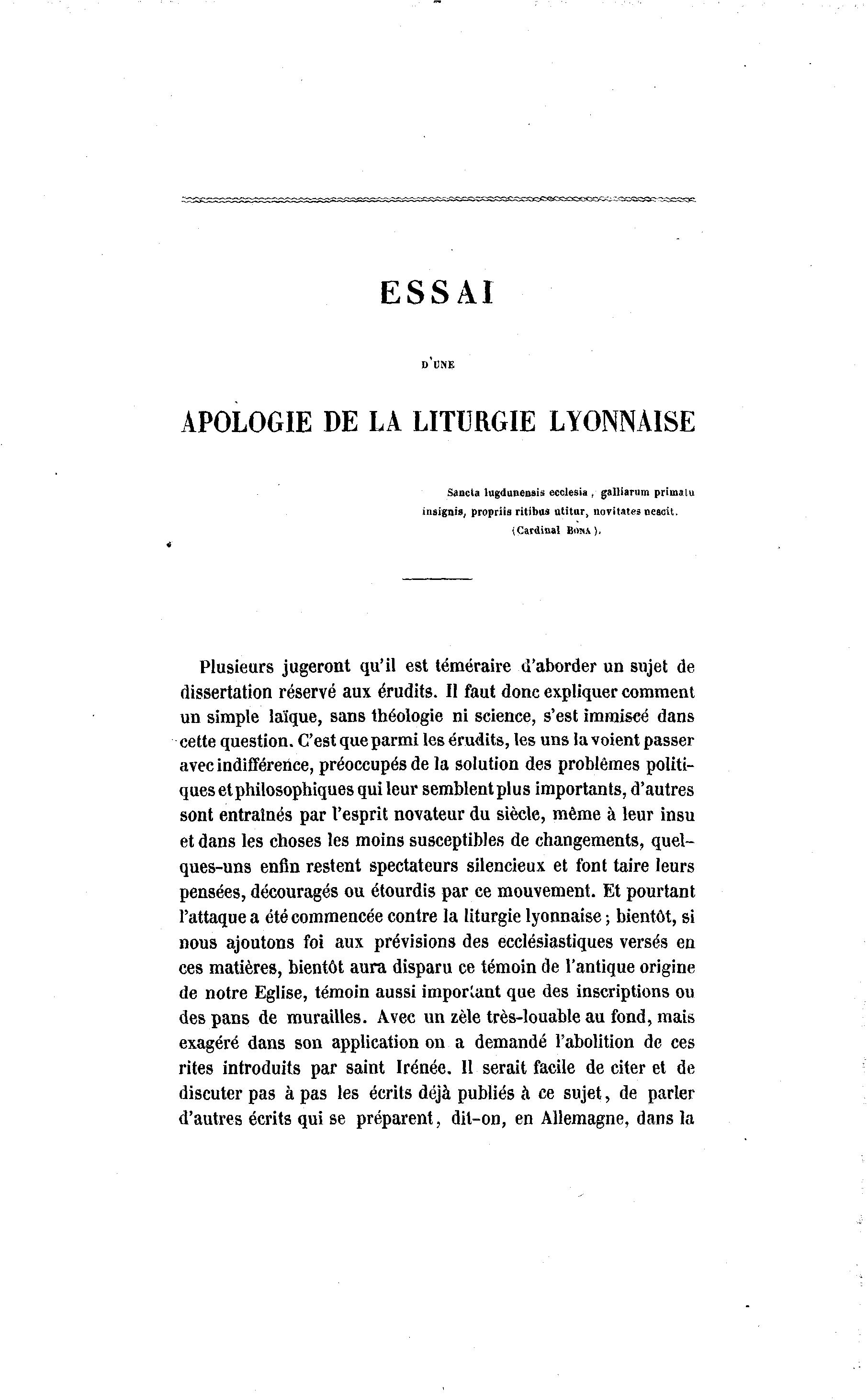 APOLOGIE DE LA LITURGIE LYONNAISE