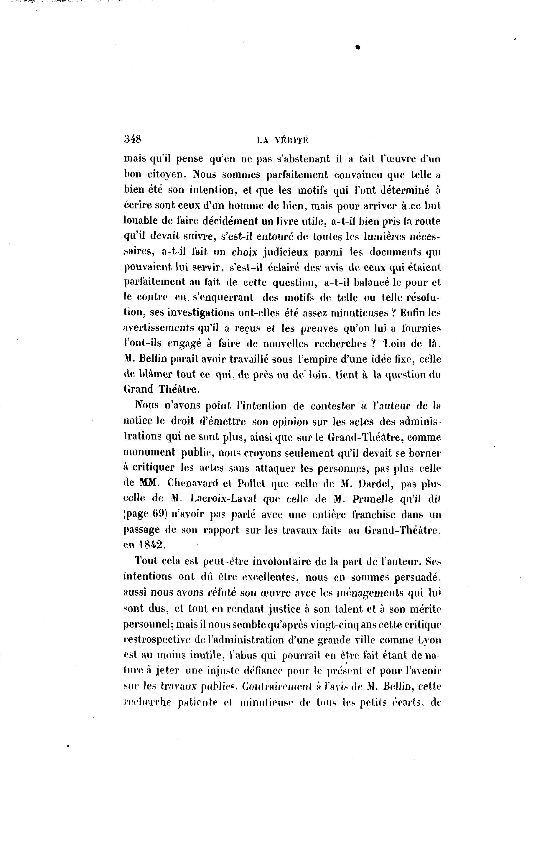 • 348 LA VÉRITÉ mais qu'il pense qu'en ne pas s'abstenanl il a fait l'œuvre d'un bon citoyen. Nous sommes parfaitement convaincu que telle a bien été son intention, et que les motifs qui l'ont déterminé à écrire sont ceux d'un homme de bien, mais pour arriver à ce but louable de faire décidément un livre utile, a-t-il bien pris la route qu'il devait suivre, s'est-il entouré de toutes les lumières néces- saires, a-t-il fait un chojx judicieux parmi les documents qui pouvaient lui servir, s'est-il éclairé des' avis de ceux qui étaient parfaitement au fait de cette question, a-t-il balancé le pour et le contre en. s'enquerrant des motifs de telle ou telle résolu tion, ses investigations ont-elles été assez minutieuses ? Enfin les avertissements qu'il a reçus et les preuves qu'on lui a fournies l'ont-ils engagé à faire de nouvelles recherches ? Loin de là . M. Bellin paraît avoir travaillé sous l'empire d'une idée fixe, celle de blâmer tout ce qui, de près ou de loin, tient à la question du Grand-Théâtre. Nous n'avons point l'intention de contester à l'auteur de la notice le droit d'émettre son opinion sur les actes des adminis trations qui ne sont plus, ainsi que sur le Grand-Théâtre, comme monument public, nous croyons seulement qu'il devait se borner à critiquer les actes sans attaquer les personnes, pas plus celle de MM. Chenavard et Pollet que celle de M. Dardel, pas plus celle de M. Lacroix-Laval que celle de M. Prunelle qu'il dit (page 69) n'avoir pas parlé avec une entière franchise dans un passage de son rapport sur les travaux faits au Grand-Théâtre, en-1842. Tout cela est peut-être involontaire de la part de l'auteur. Ses intentions ont dû être excellentes, nous en sommes persuadé, aussi nous avons réfuté son œuvre avec les ménagements qui lui sont dus, et tout en rendant justice à son talent et à son mérite personnel; mais il nous semble qu'après vingt-cinq ans cette critique restrospective de l'administration d'une grande ville comme Lyon esl au moins inutile, l'abus qui pourrait en être fait étant de na lure à jeter une injuste défiance pour le présent et pour l'avenir sur les travaux publics. Contrairement à l'avis de M. Bellin, cette recherche patiente et minutieuse de tous les petits écarts, de