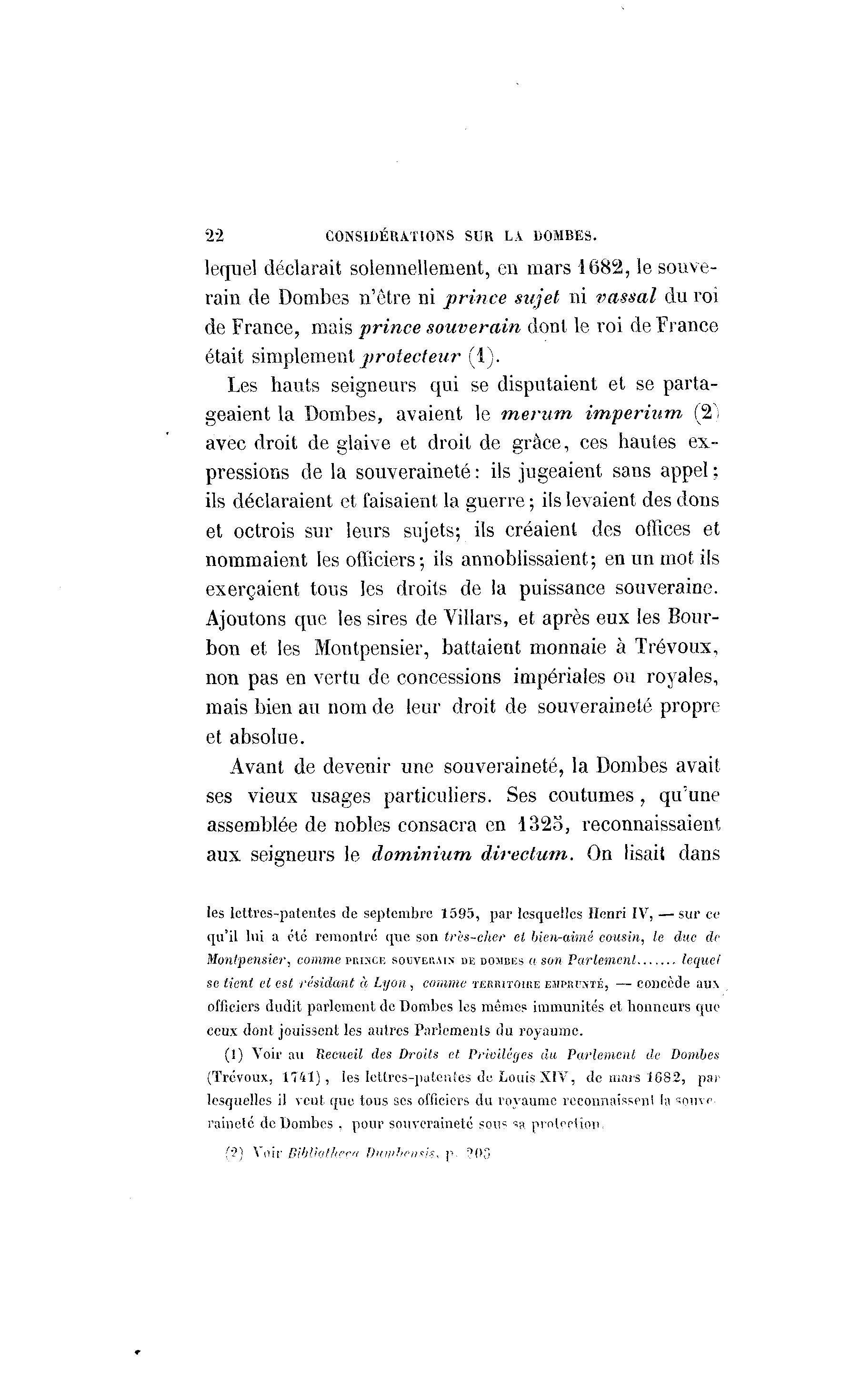 (1) Voir au Recueil des Droits et Privilèges du Parlement de Dombes