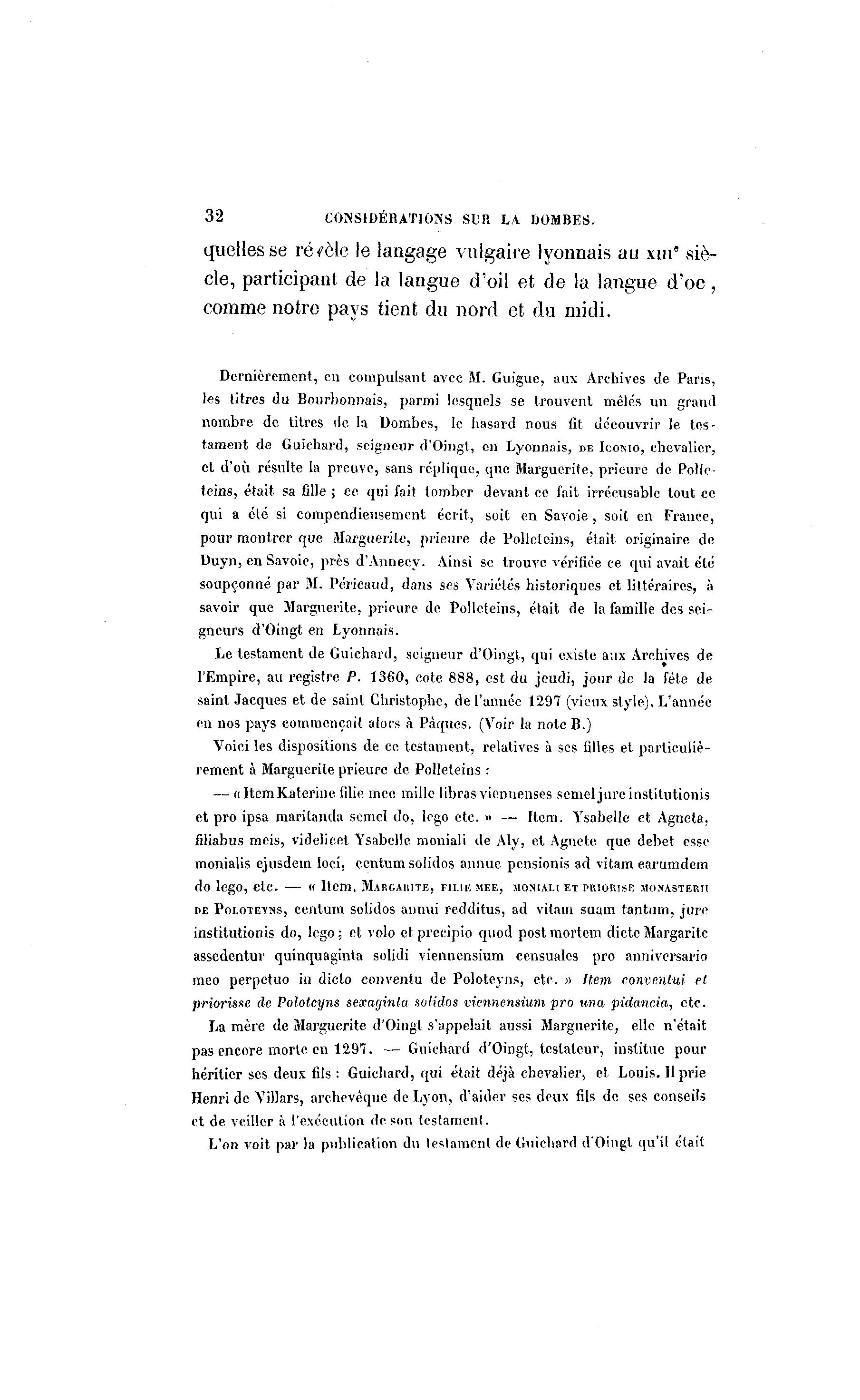 L'on voit par la publication du testament de Guichard d'Oingt qu'il était