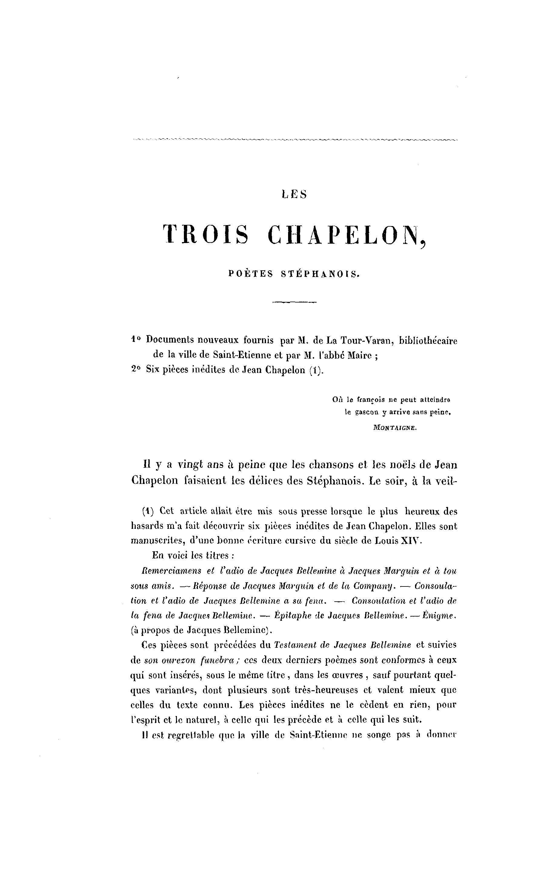 1° Documents nouveaux fournis par M. de La Tour-Varan, bibliothécaire