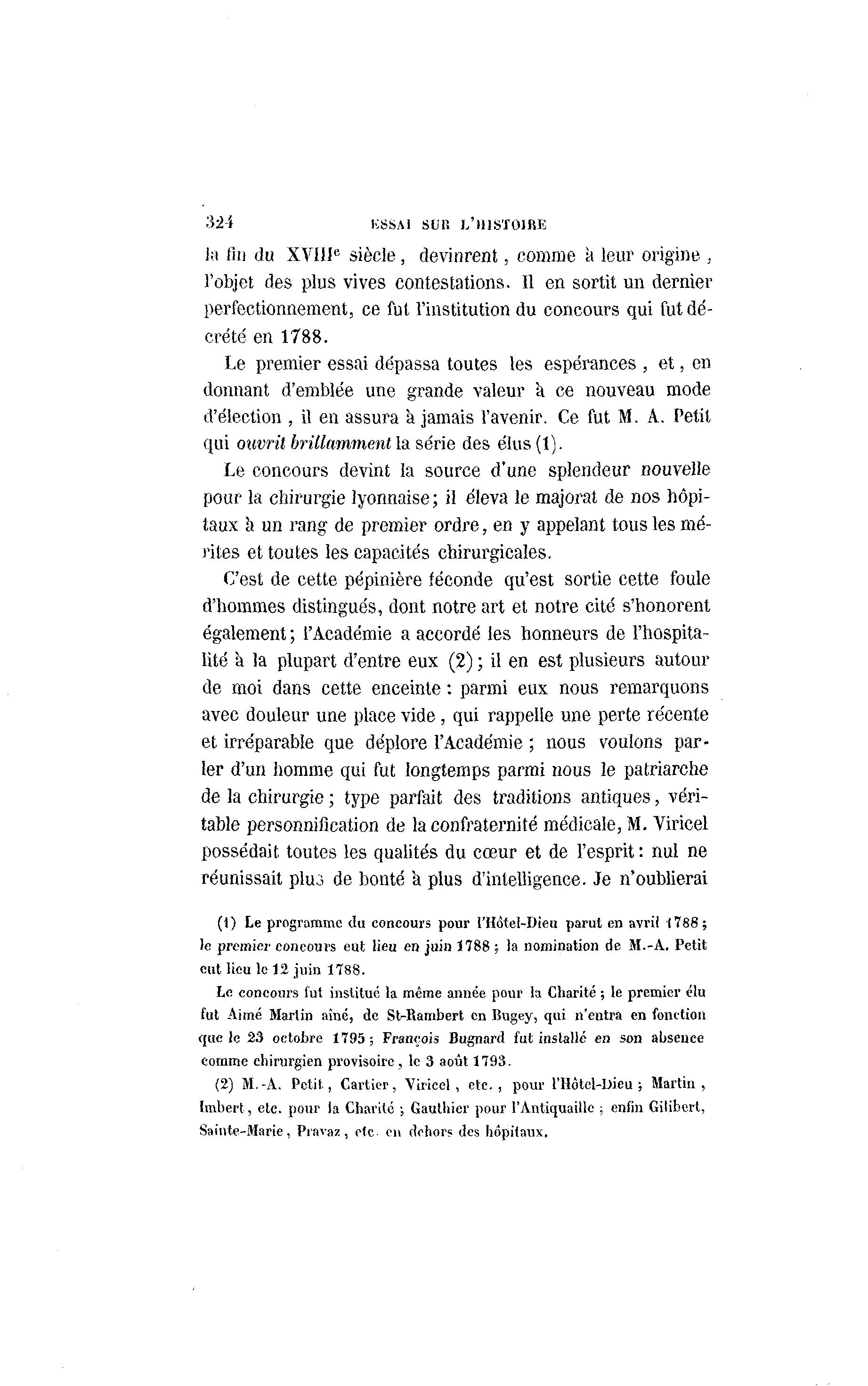 le premier concours eut lieu en juin 1788 ; la nomination de M.-A. Petit